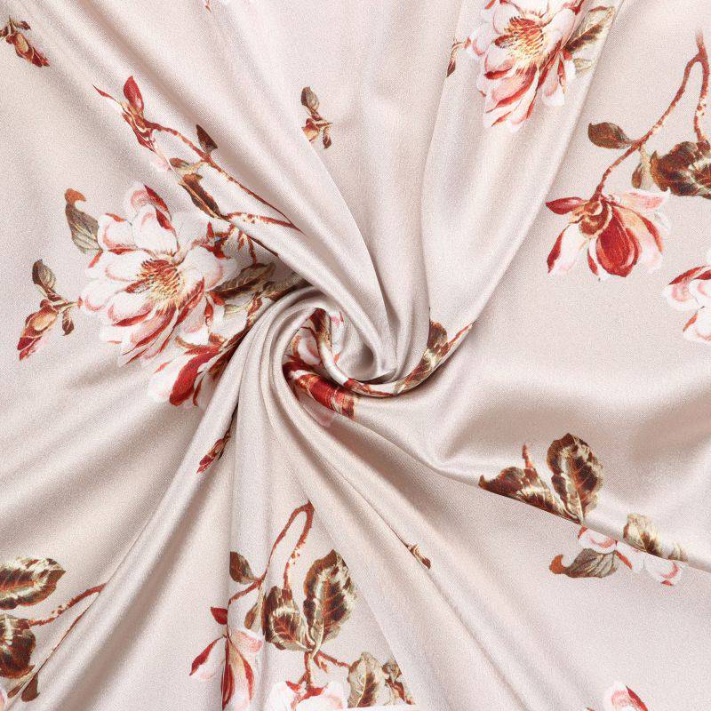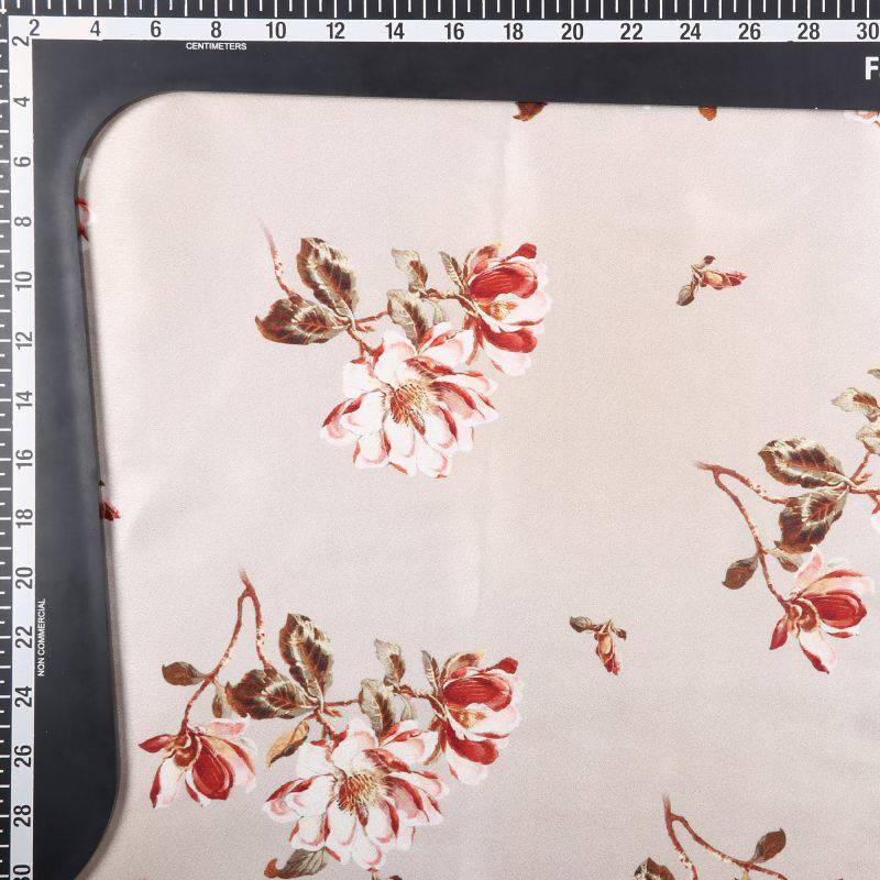 Beige And Light Brown Floral Pattern Digital Print Japan Satin Fabric