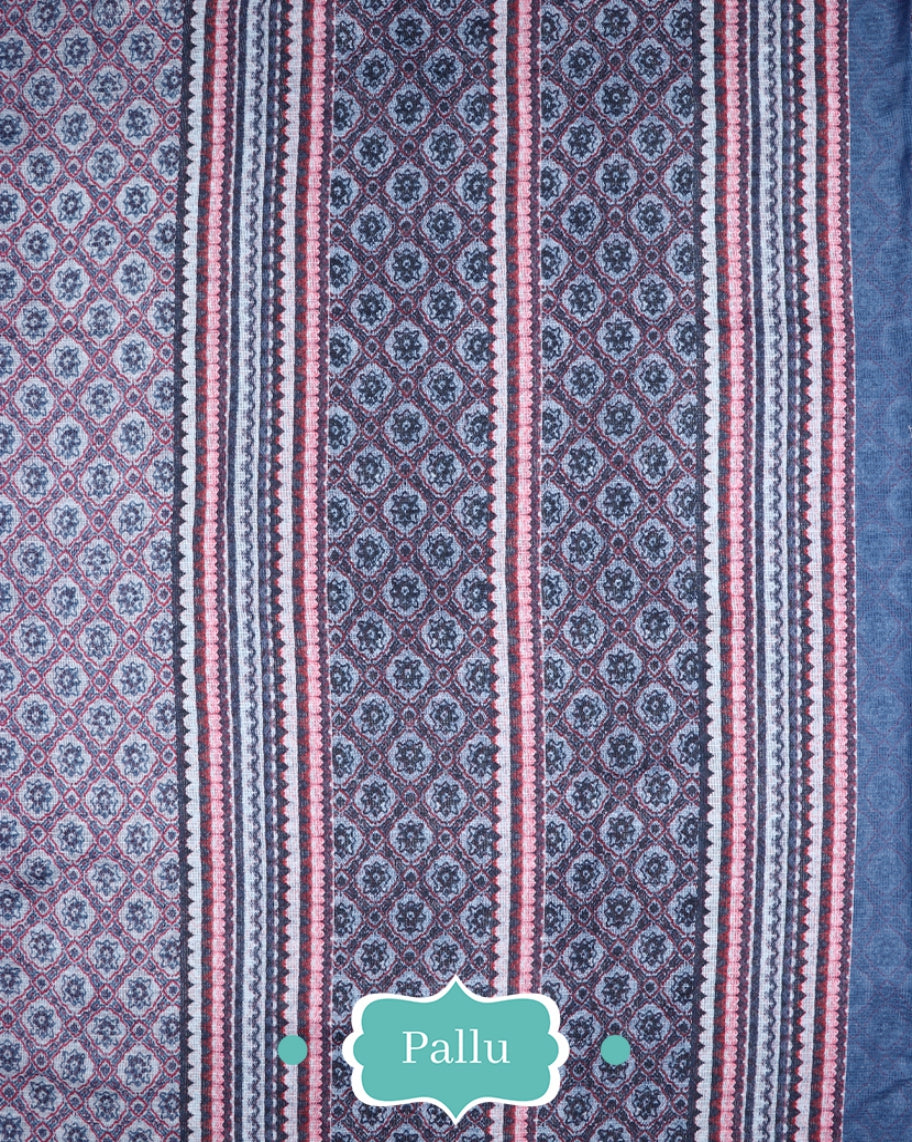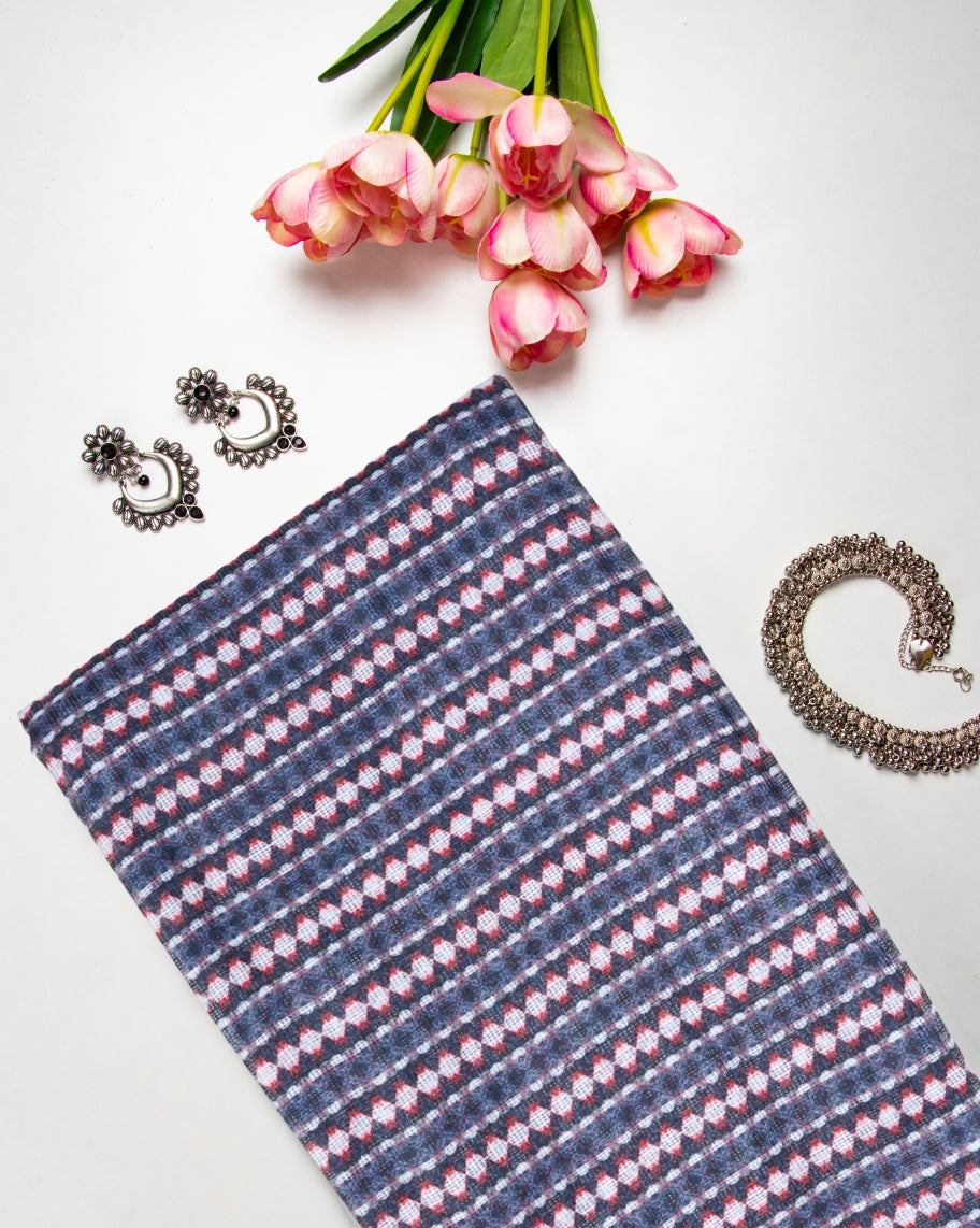 Blue And White Stripes Pattern Digital Print Kota Doria Saree With Blouse