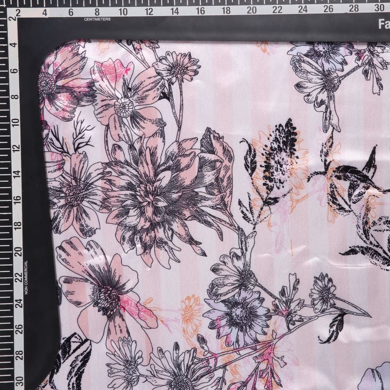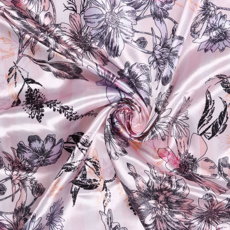 Rose Gold And Black Floral Pattern Digital Print Japan Satin Fabric