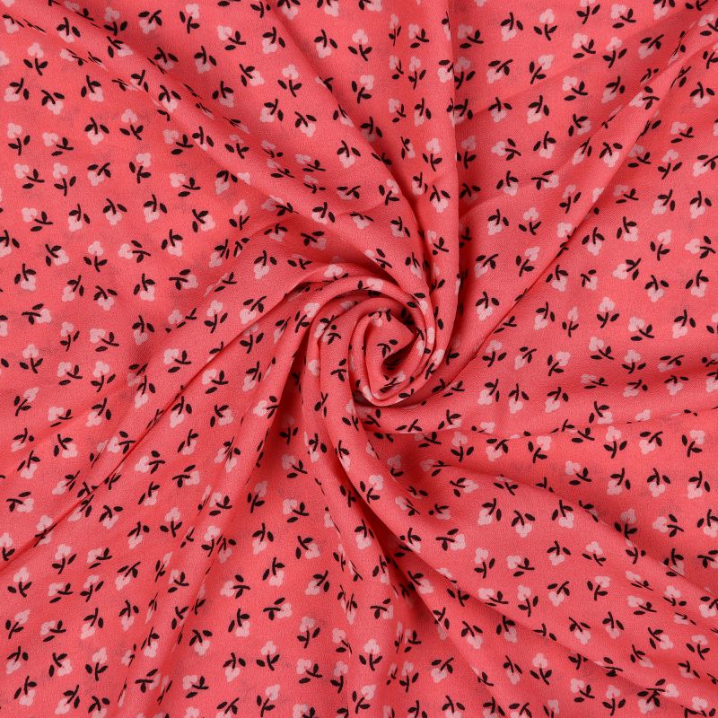 Georgia Peach And Black Floral Pattern Screen Print Moss Crepe Fabric