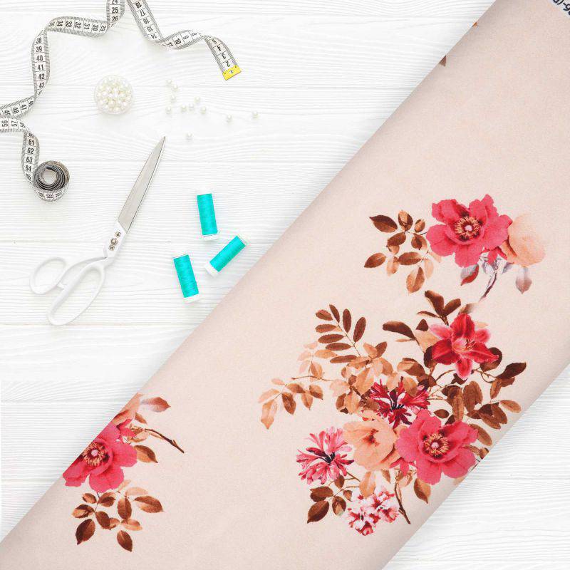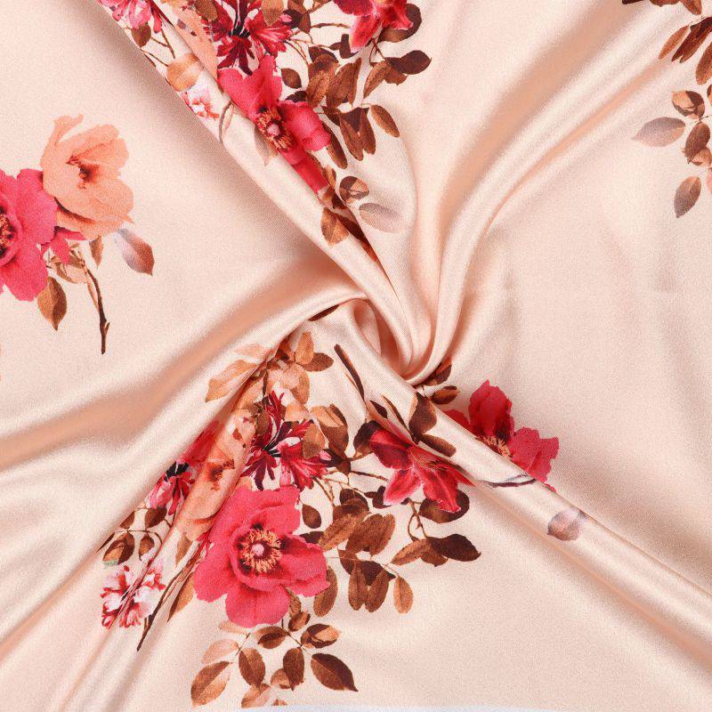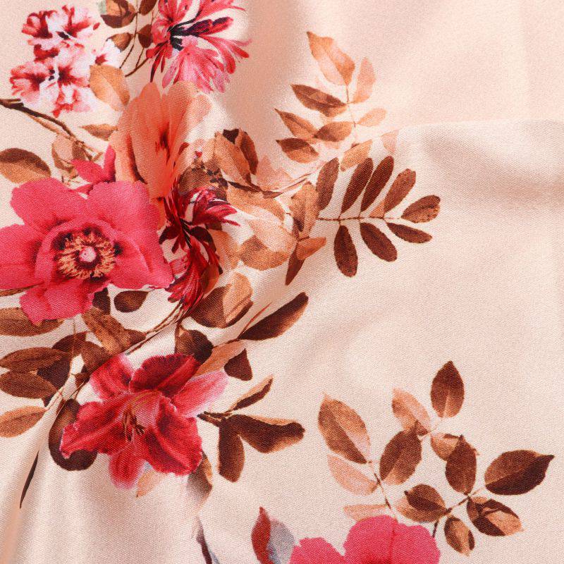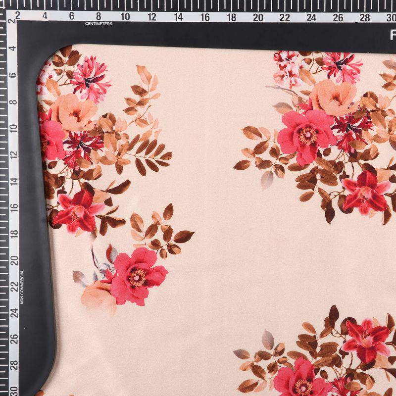Light Beige And Bright Red Floral Pattern Digital Print Japan Satin Fabric