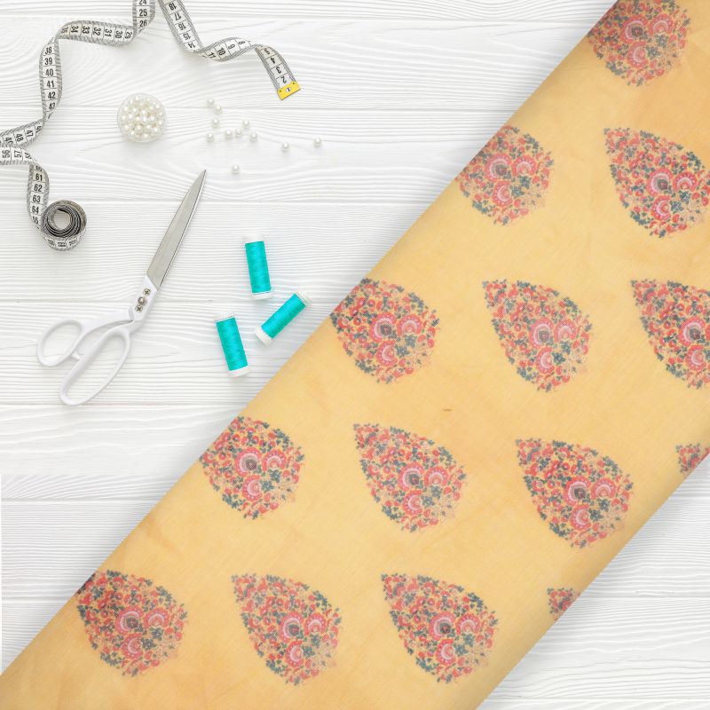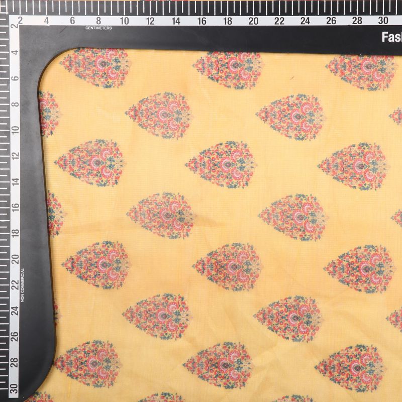 Mustard Yellow And Red Mughal Pattern Digital Print Chanderi Fabric
