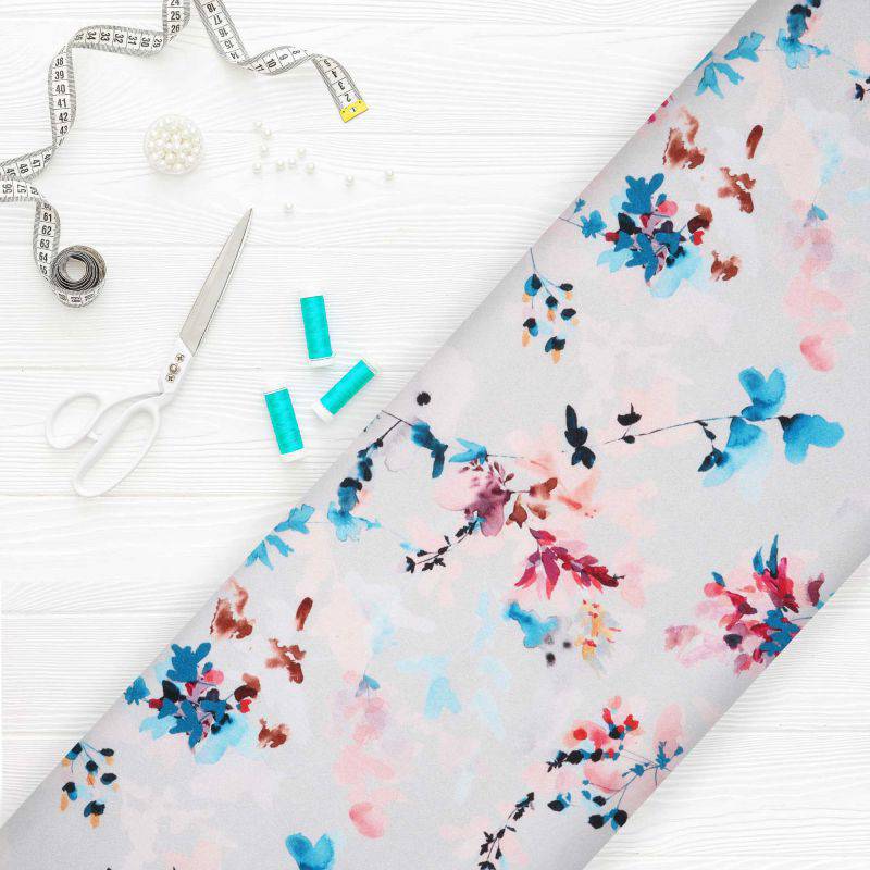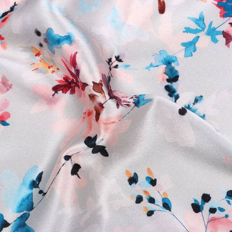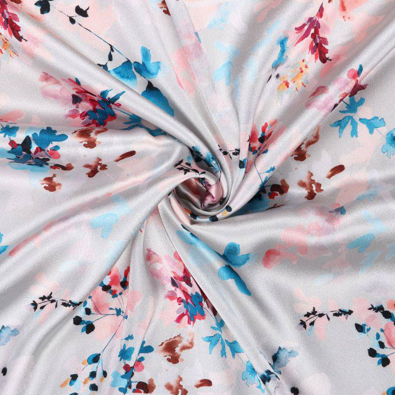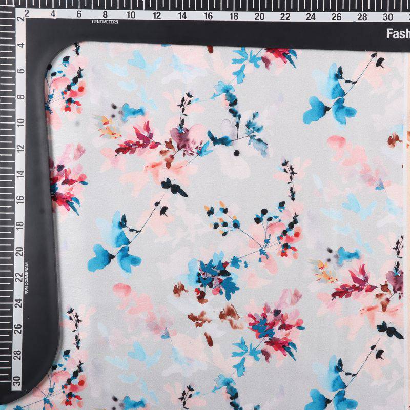 Sky Blue And Purple Floral Pattern Digital Print Japan Satin Fabric