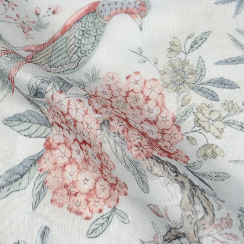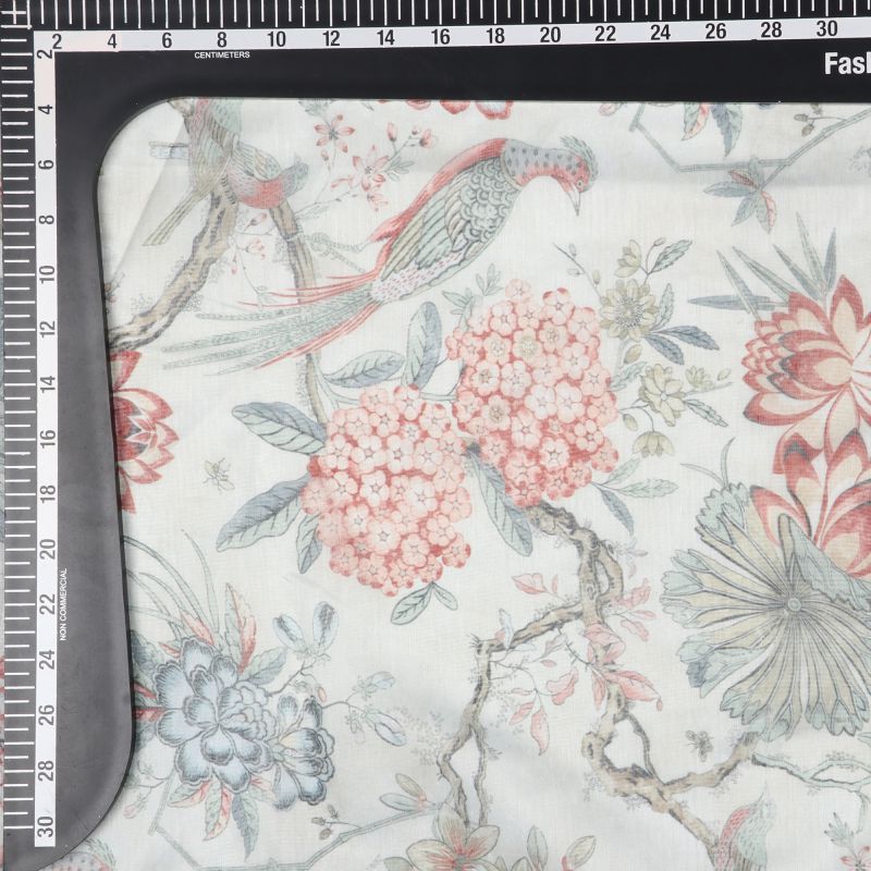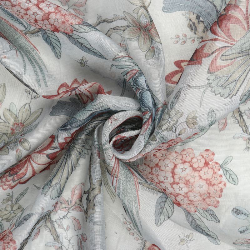 Squirrel Grey And Red Floral Pattern Digital Print Chanderi Fabric