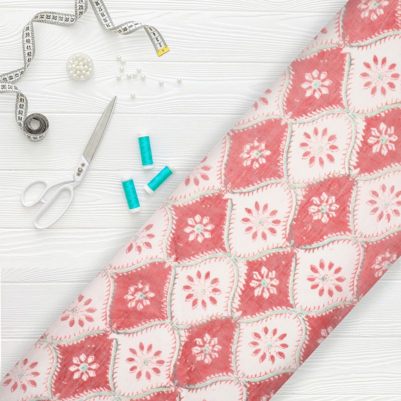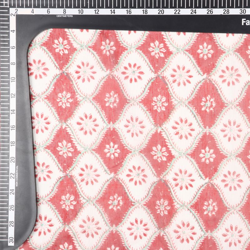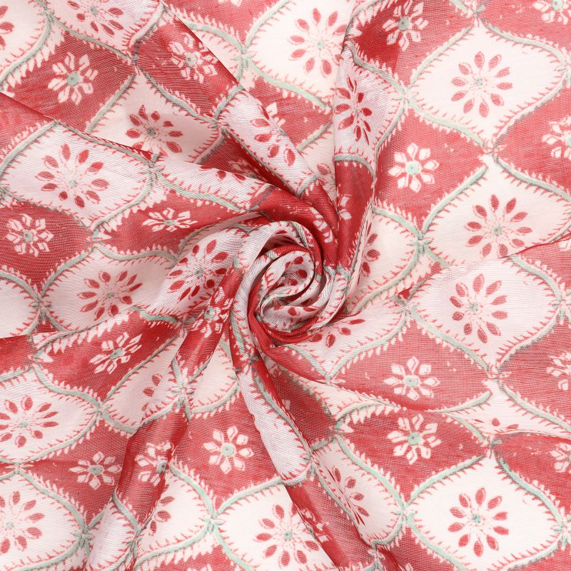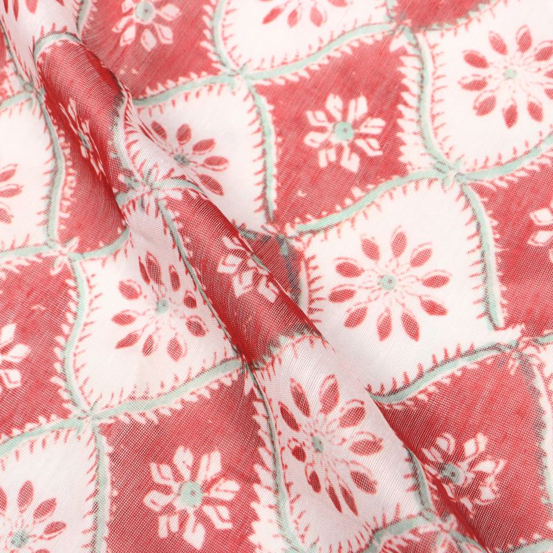 White And Red Trellis Pattern Digital Print Chanderi Fabric