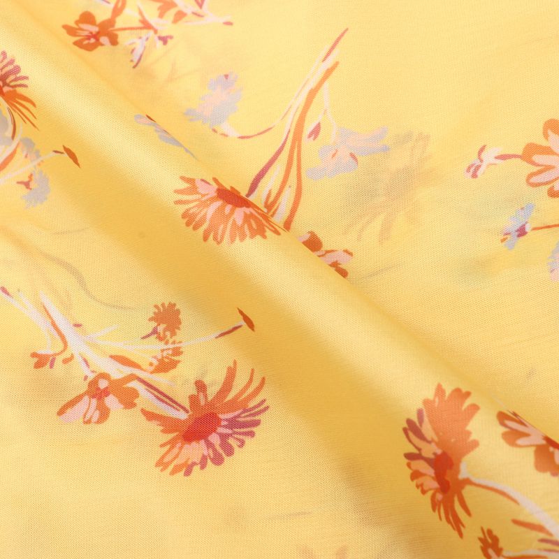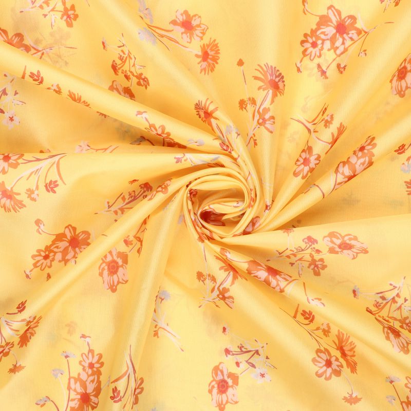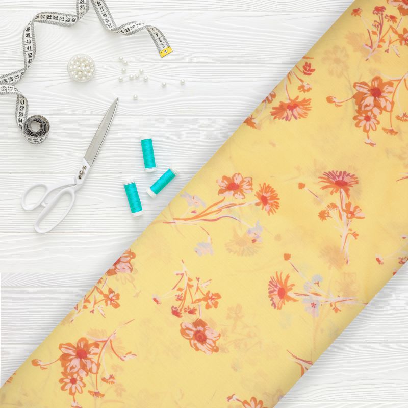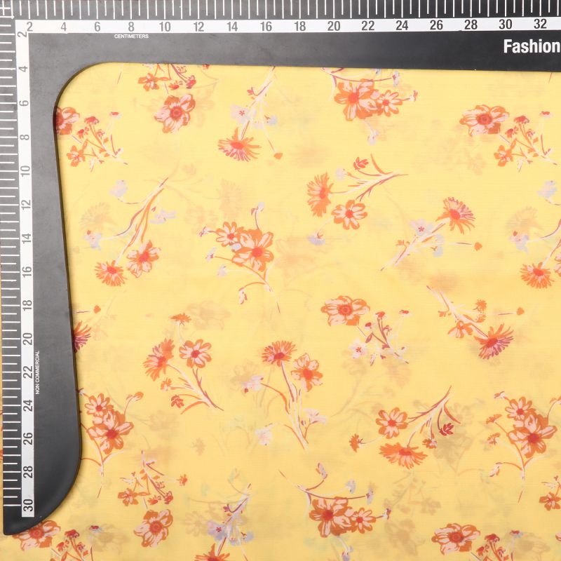 Yellow And Orange Floral Pattern Digital Print Liquid Organza Fabric
