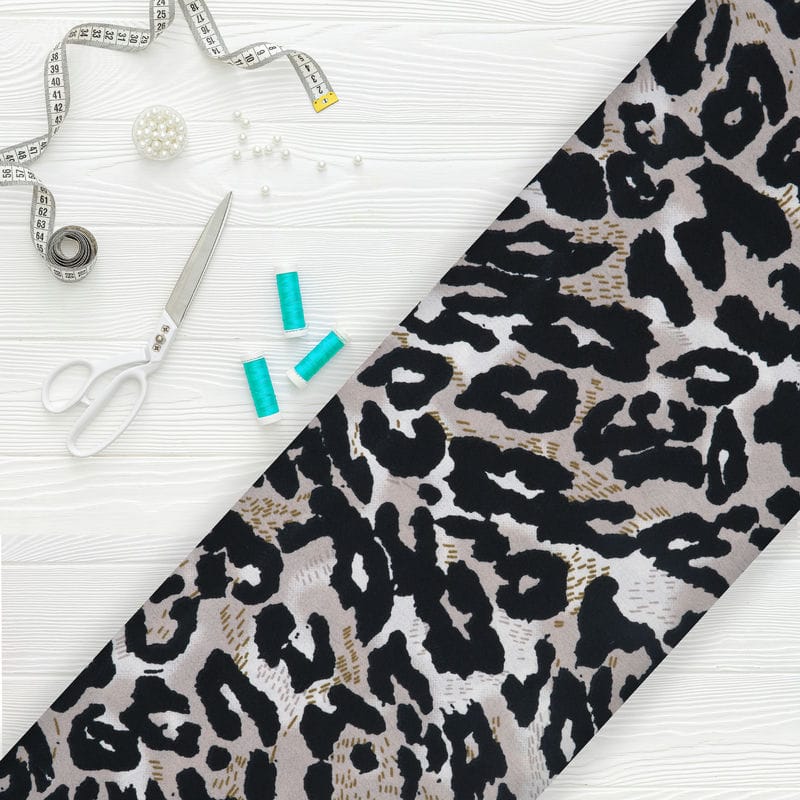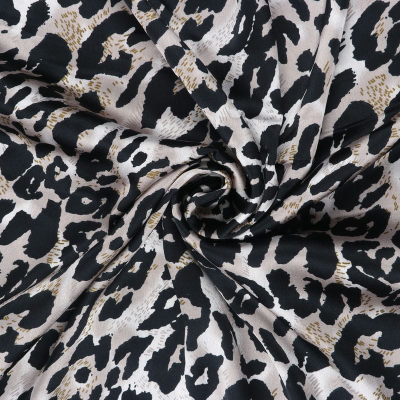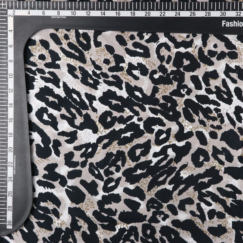 Beige And Black Animal Pattern Screen Print Japan Satin Fabric (Bulk)
