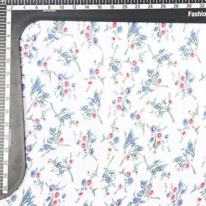 White And Lavender Floral Pattern Digital Print Crepe Fabric (Bulk)