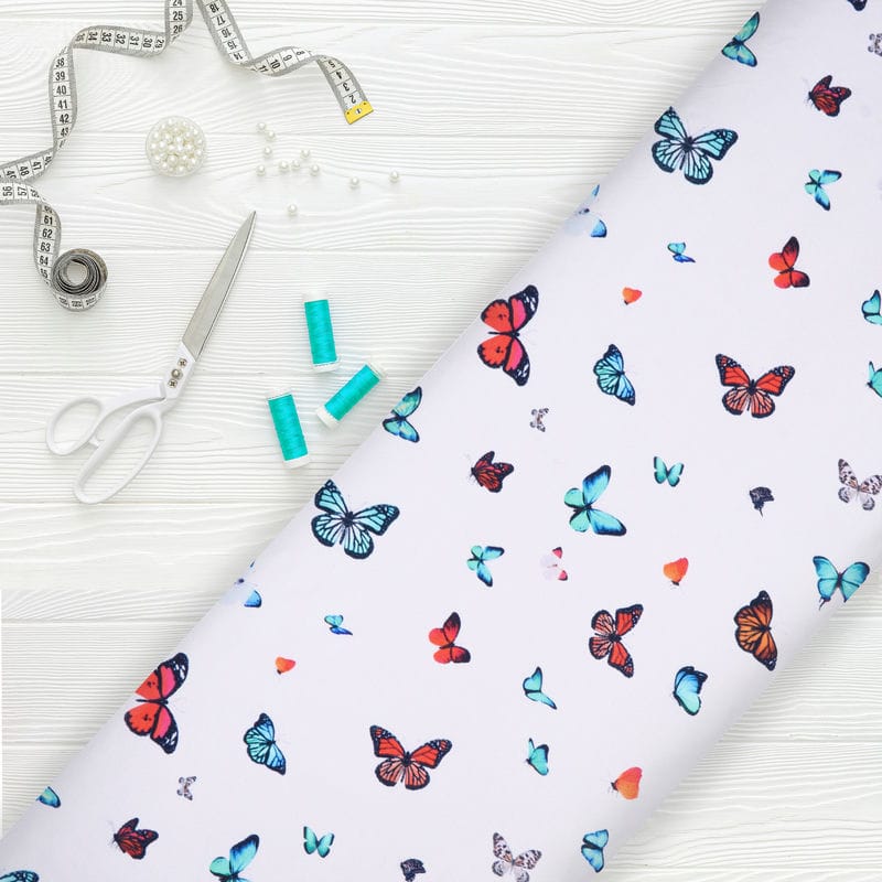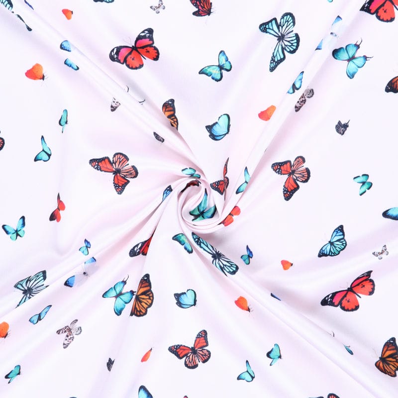 Turquoise And Orange Butterfly Pattern Digital Print Silk Satin Fabric