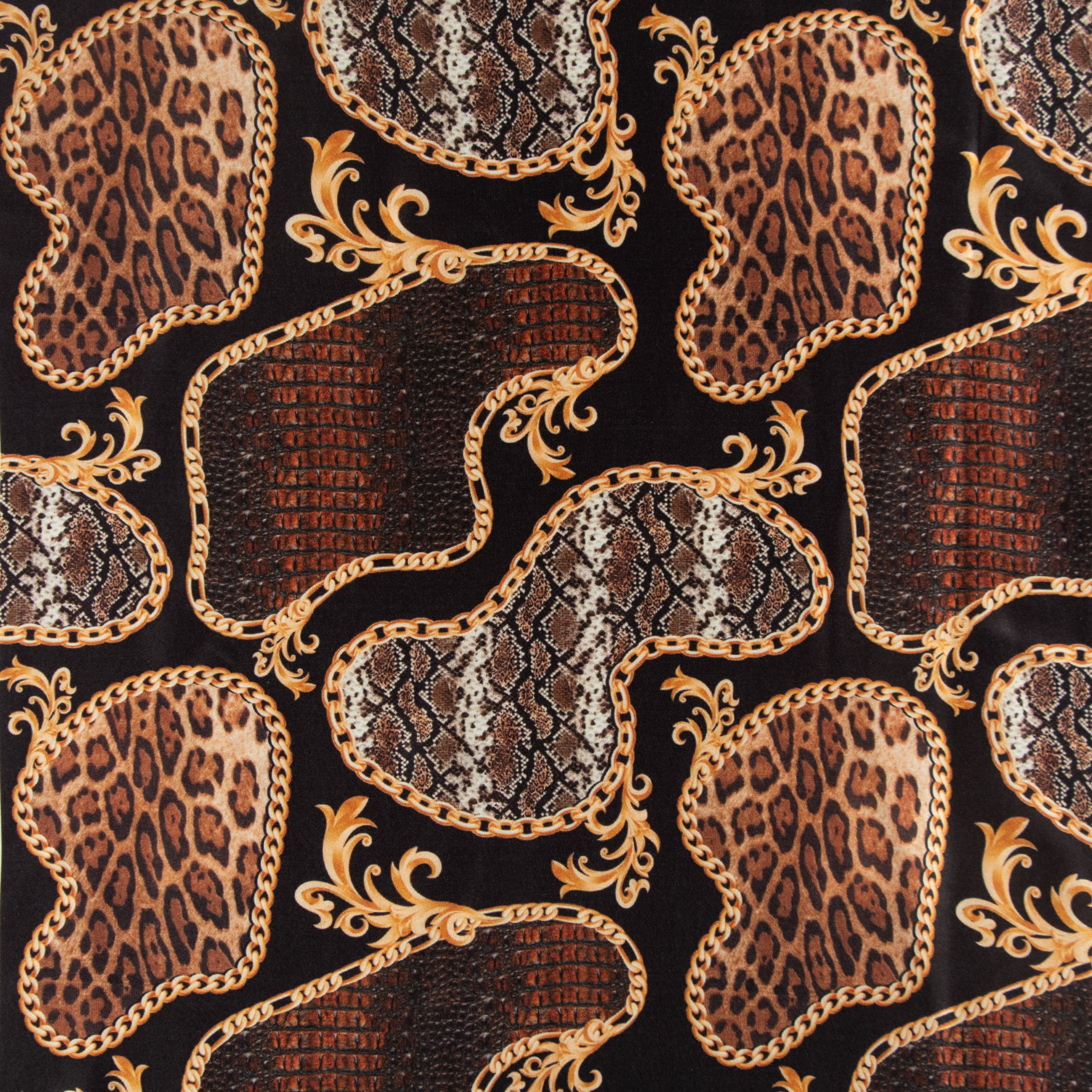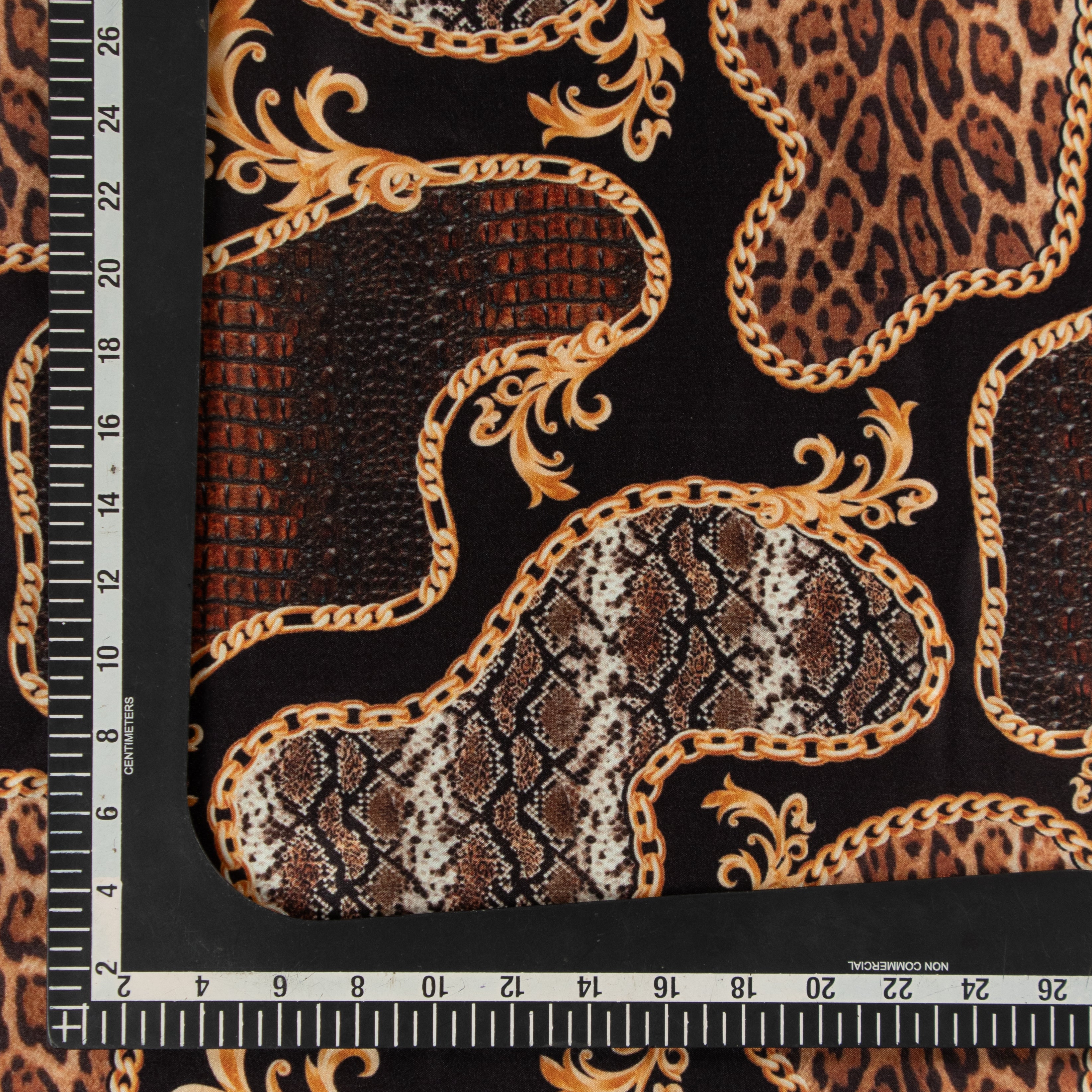 Black And Brown Chain Animal Pattern Digital Print Japan Satin Fabric