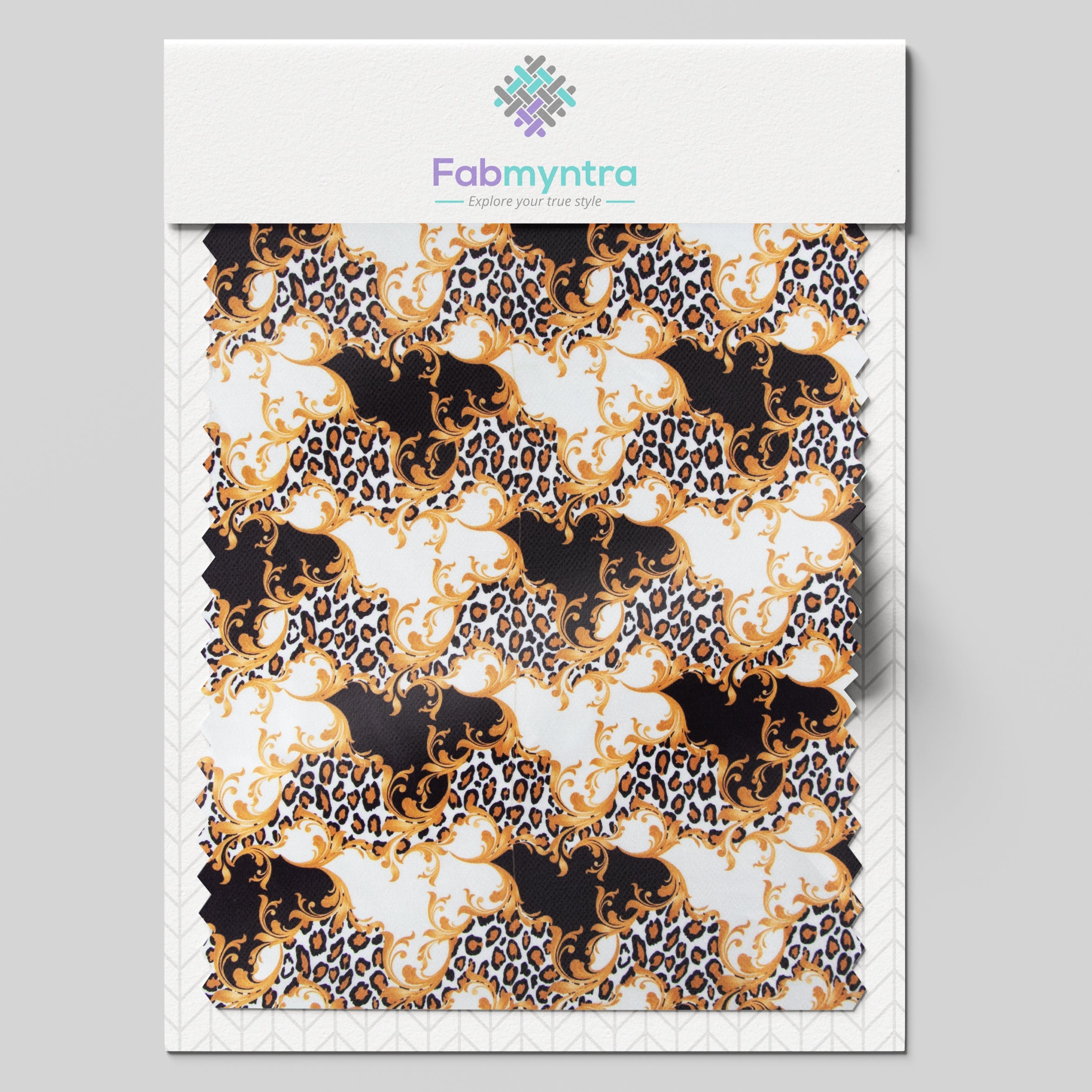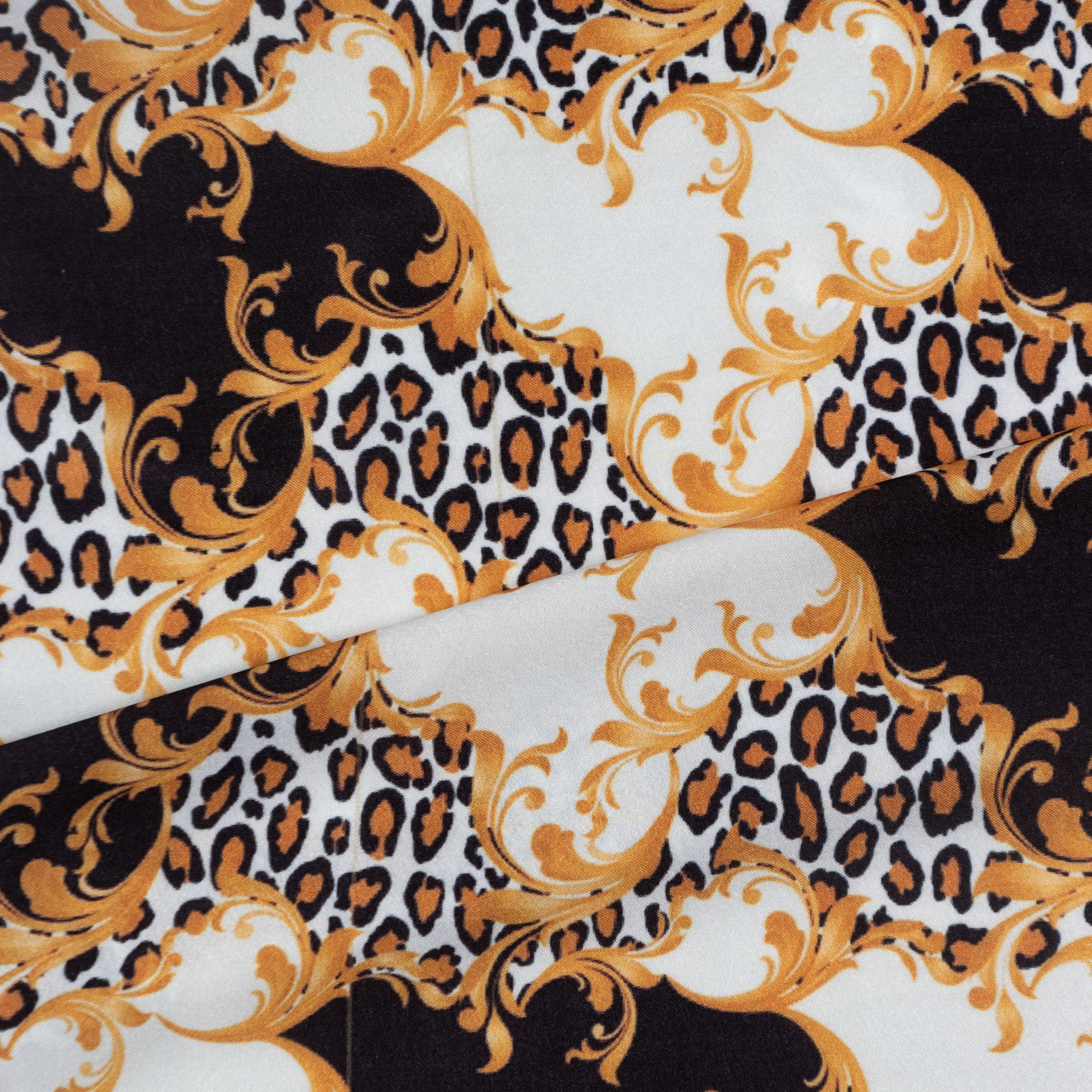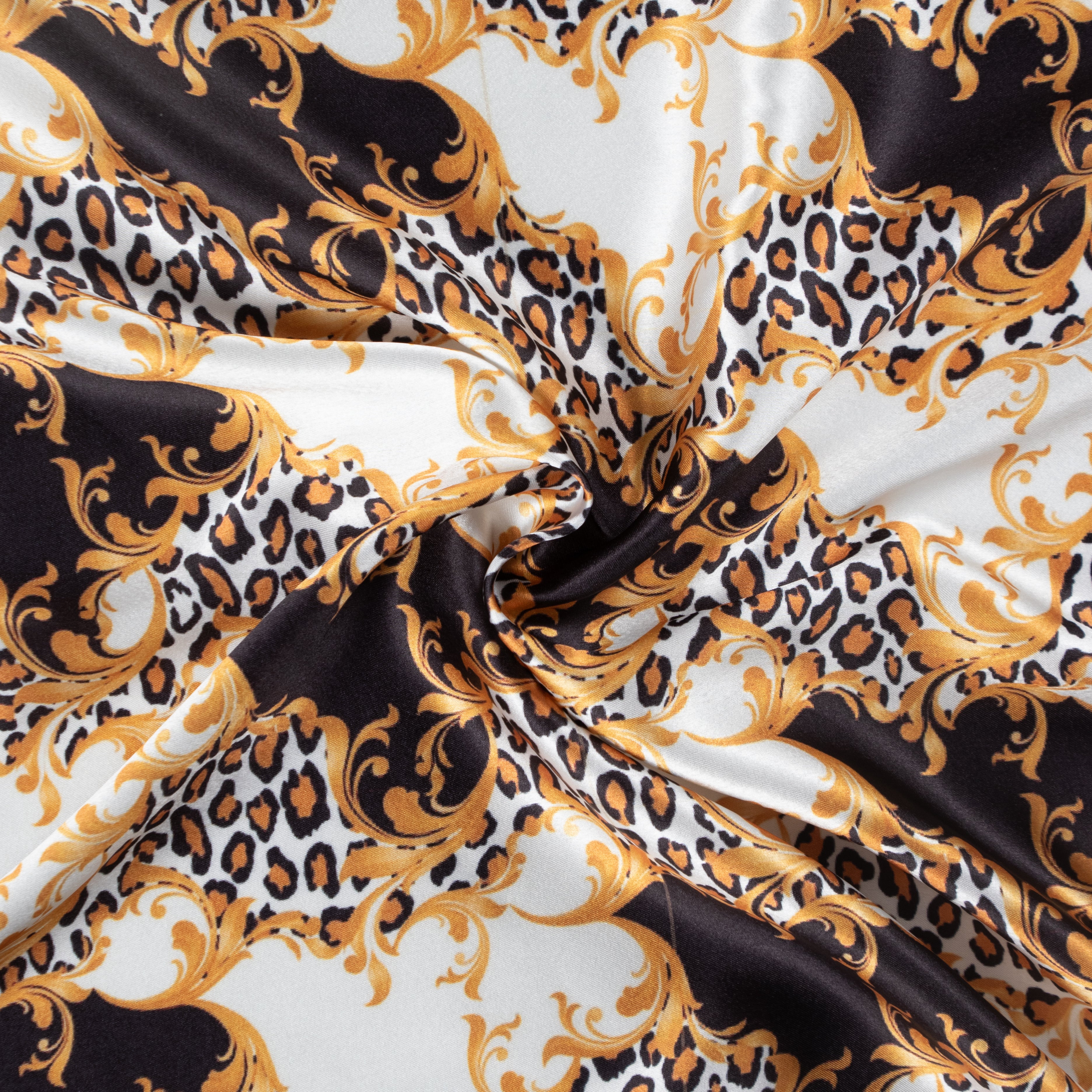Black And Gold Chain Animal Pattern Digital Print Japan Satin Fabric