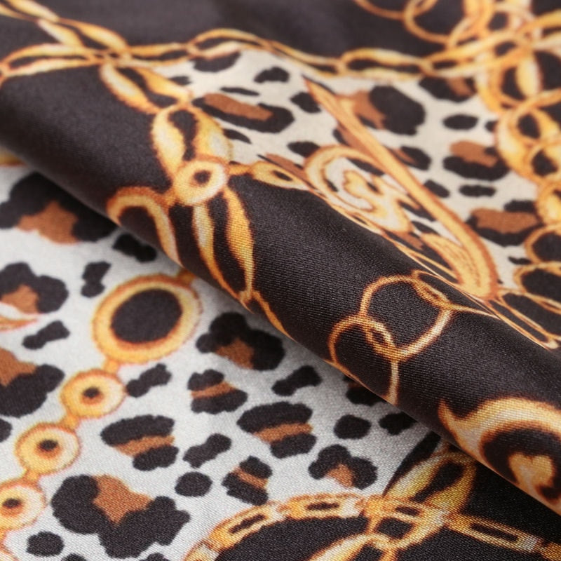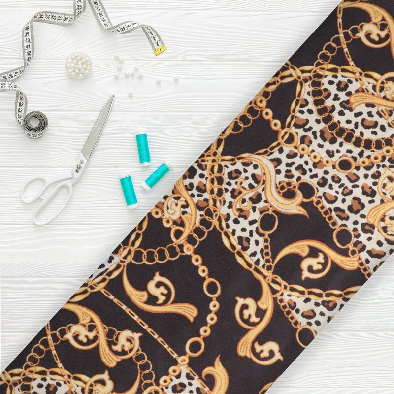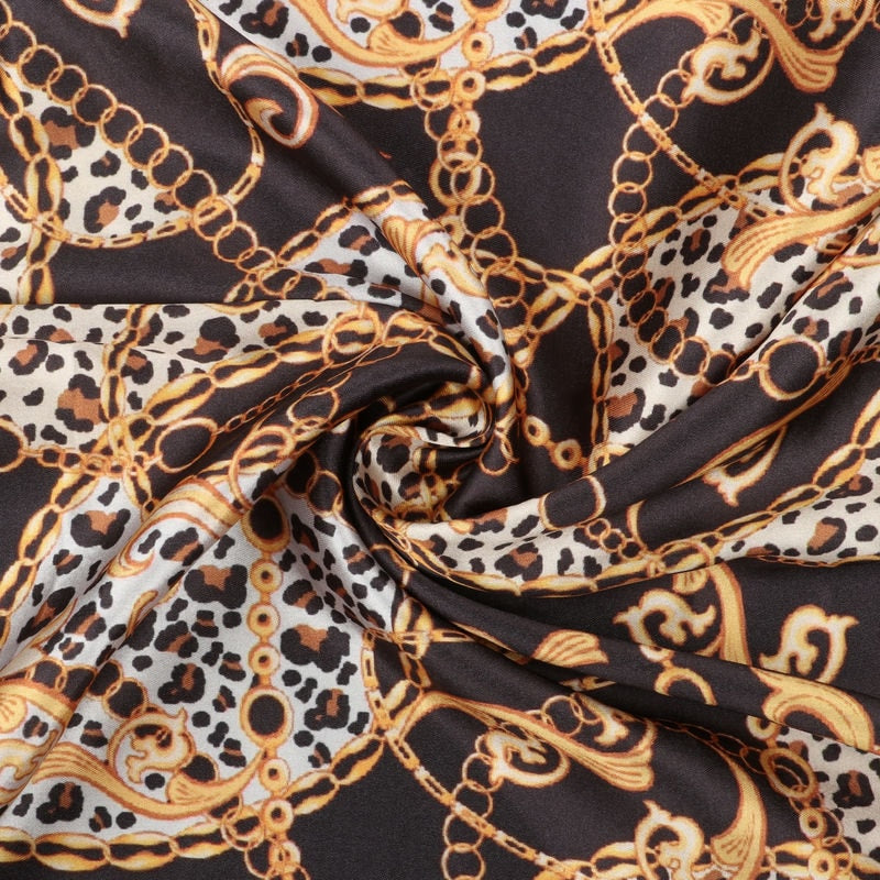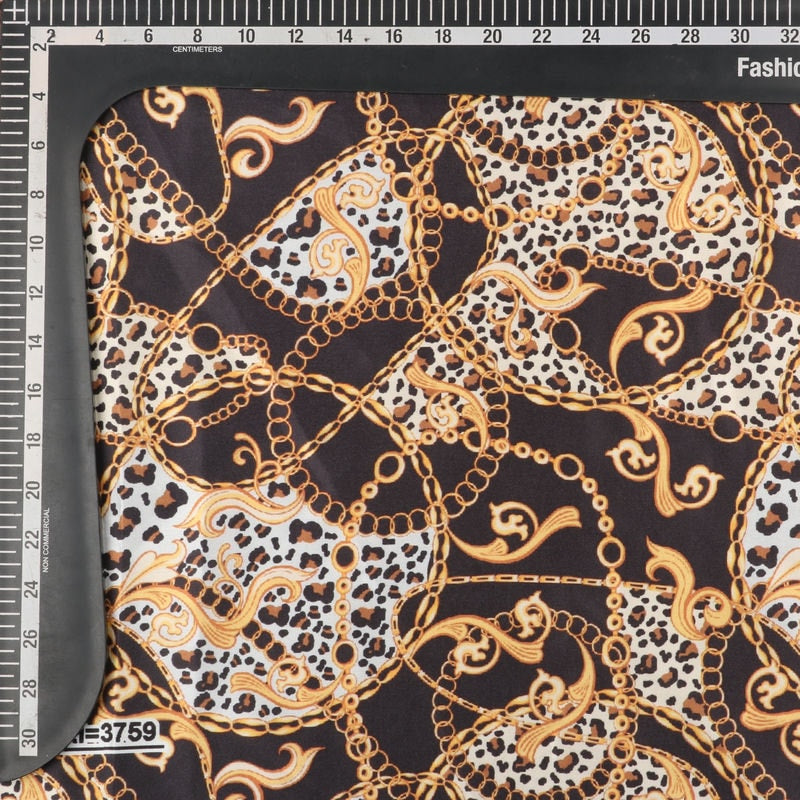Black And Gold Chain Pattern Digital Print Japan Satin Fabric