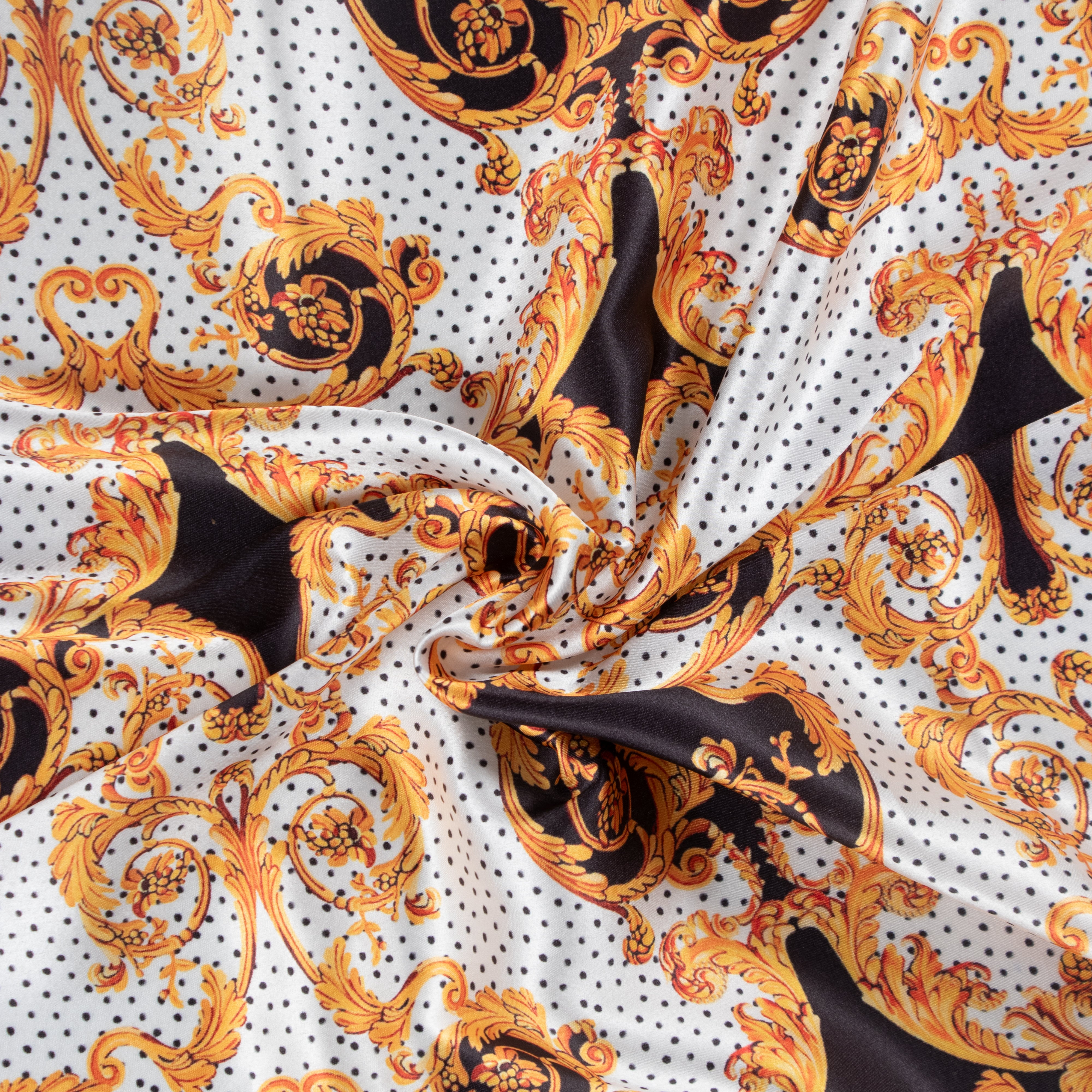 Black And Gold Chain Polka Dot Pattern Digital Print Japan Satin Fabric