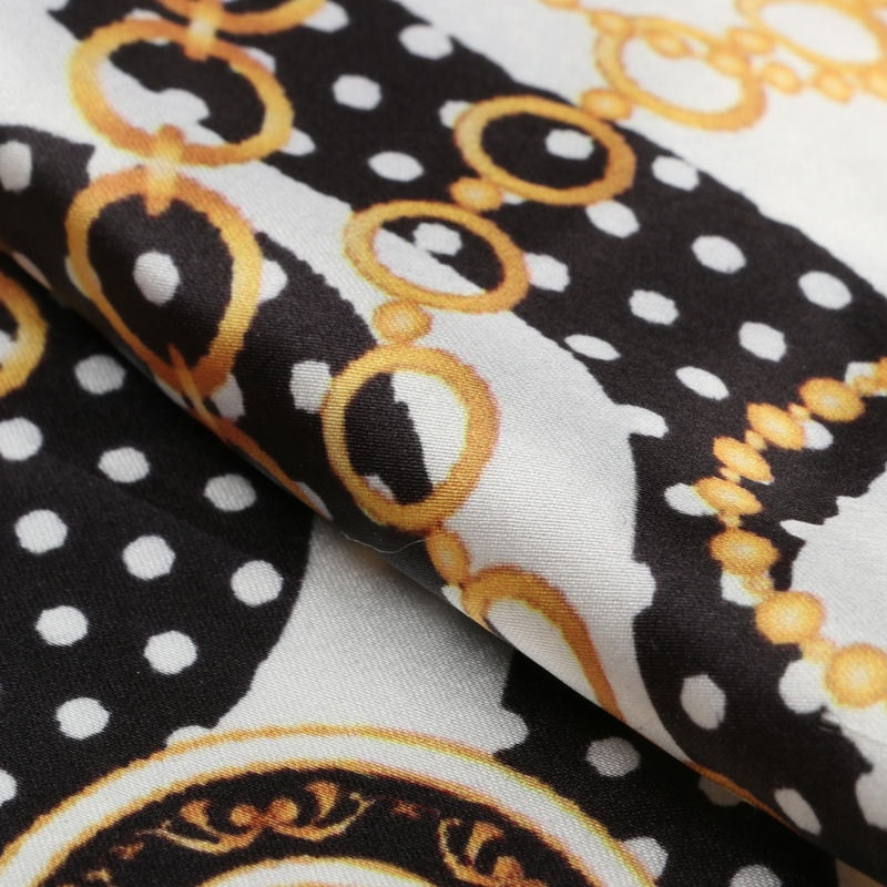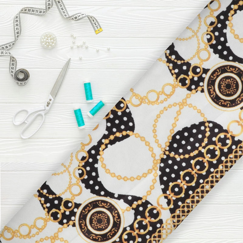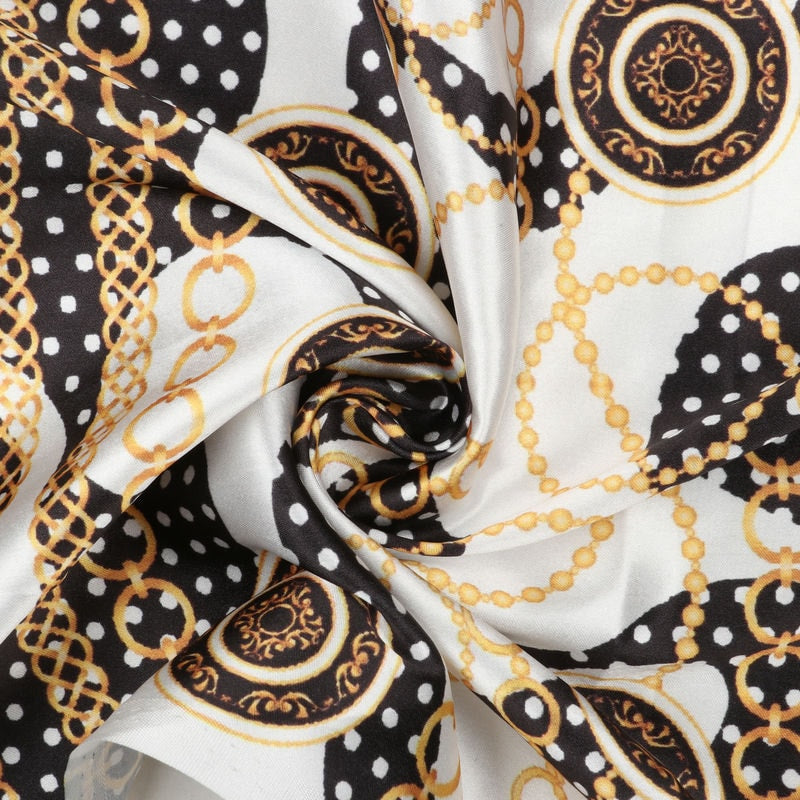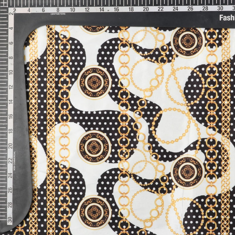 Black And White Chain Pattern Digital Print Japan Satin Fabric