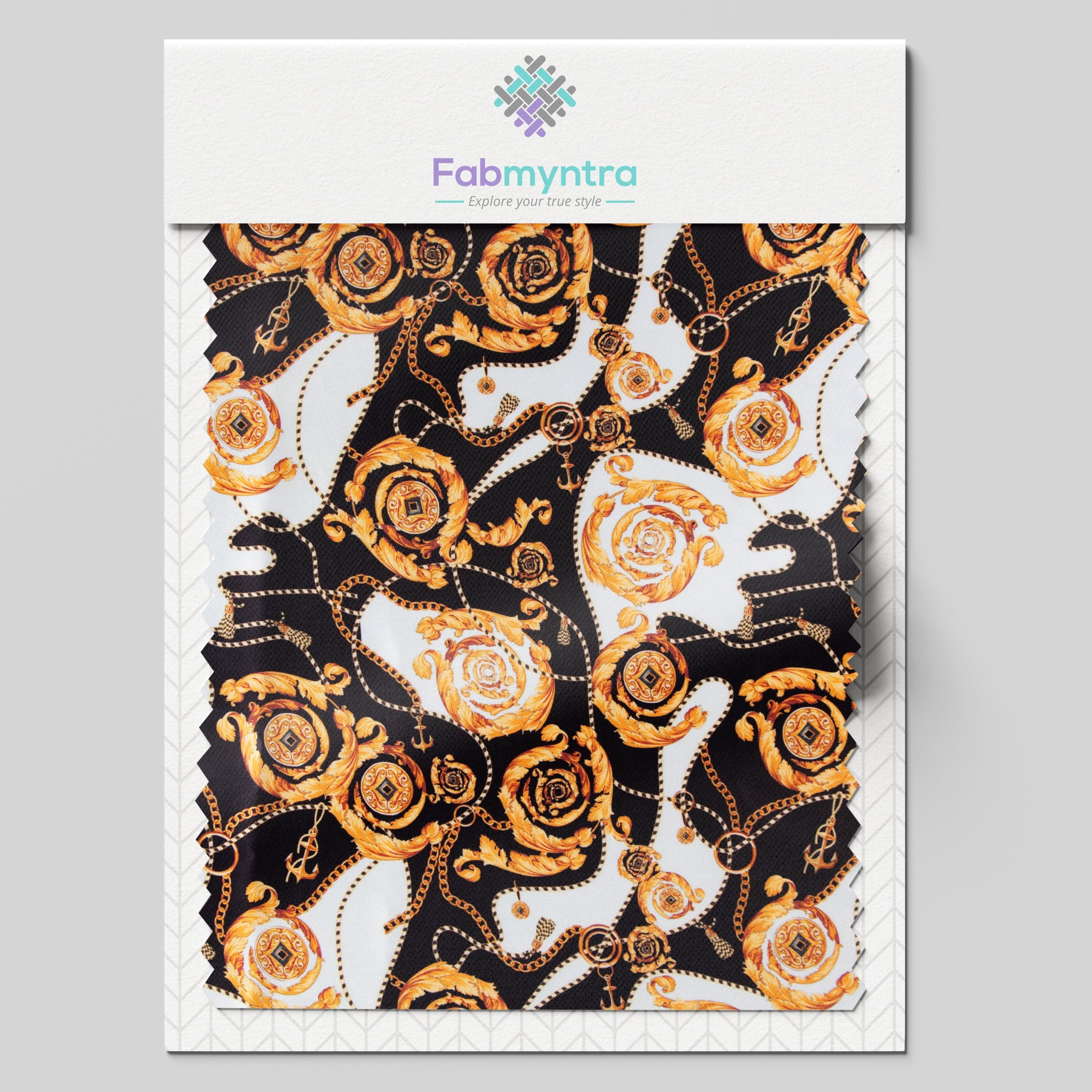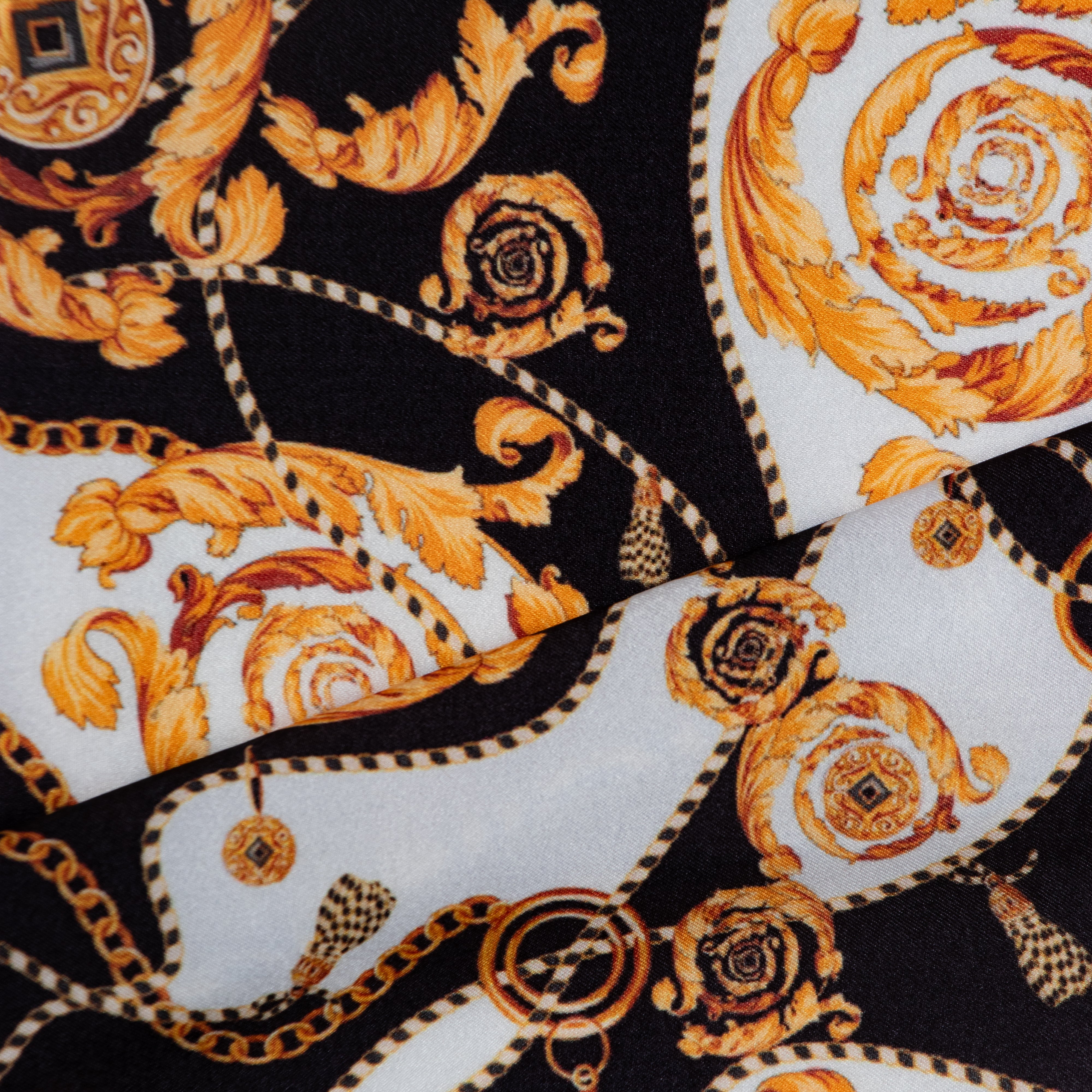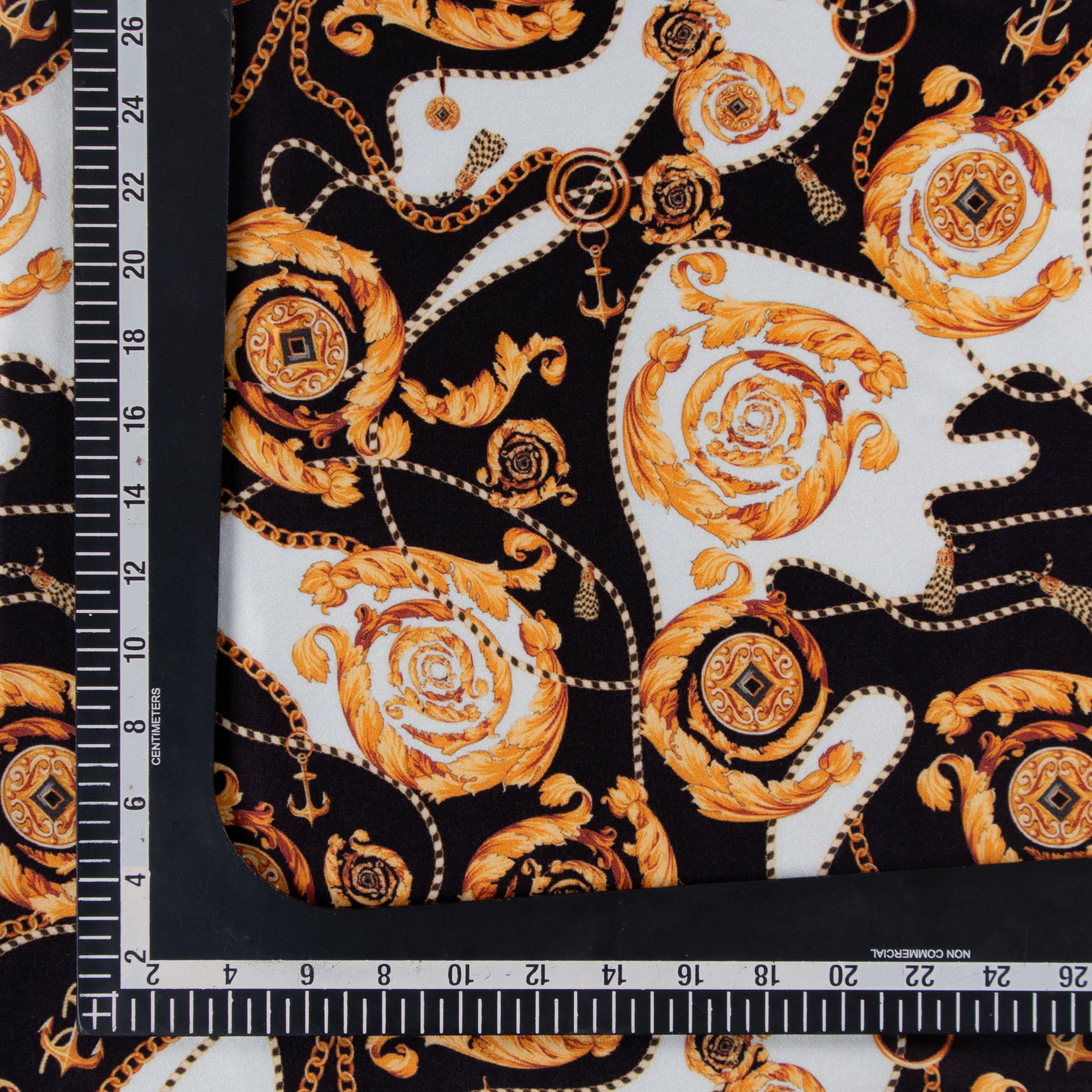 Black And White Gold Chain Seamless Pattern Digital Print Japan Satin Fabric