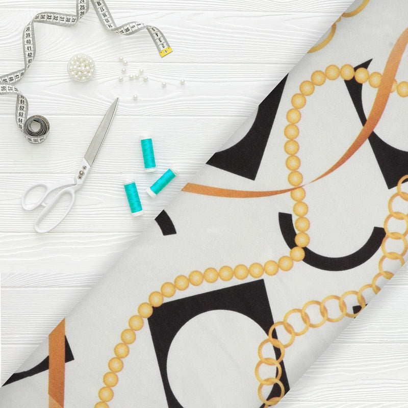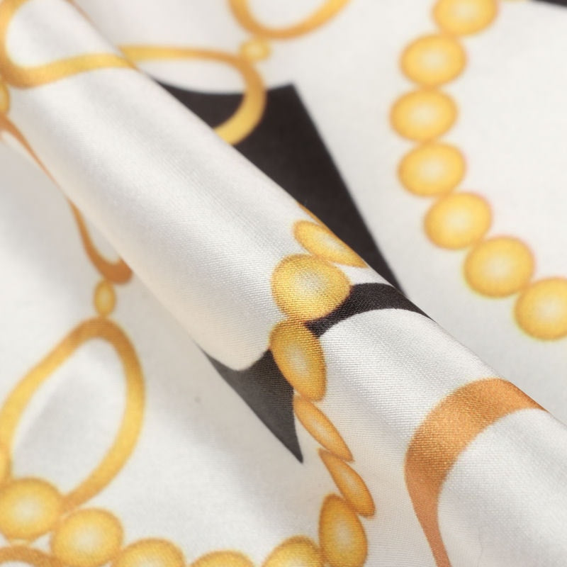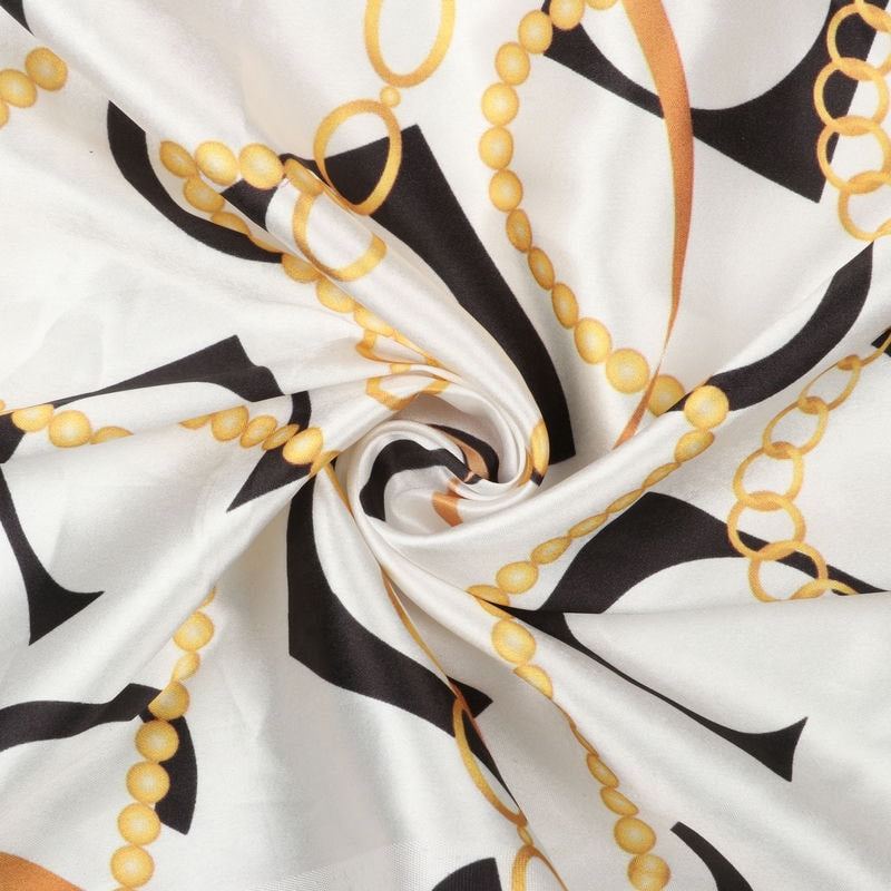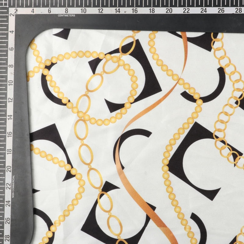 White And Black Chain Pattern Digital Print Japan Satin Fabric