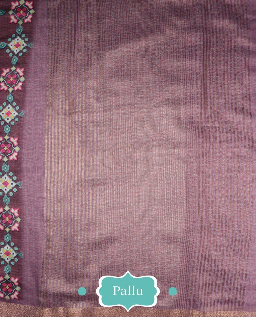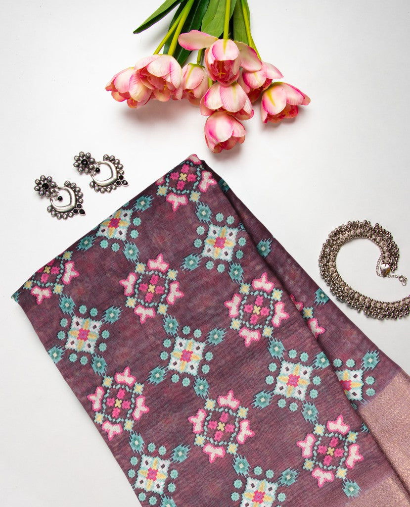 Burgundy And White Traditional Pattern Digital Print Chanderi Lurex Saree With Blouse