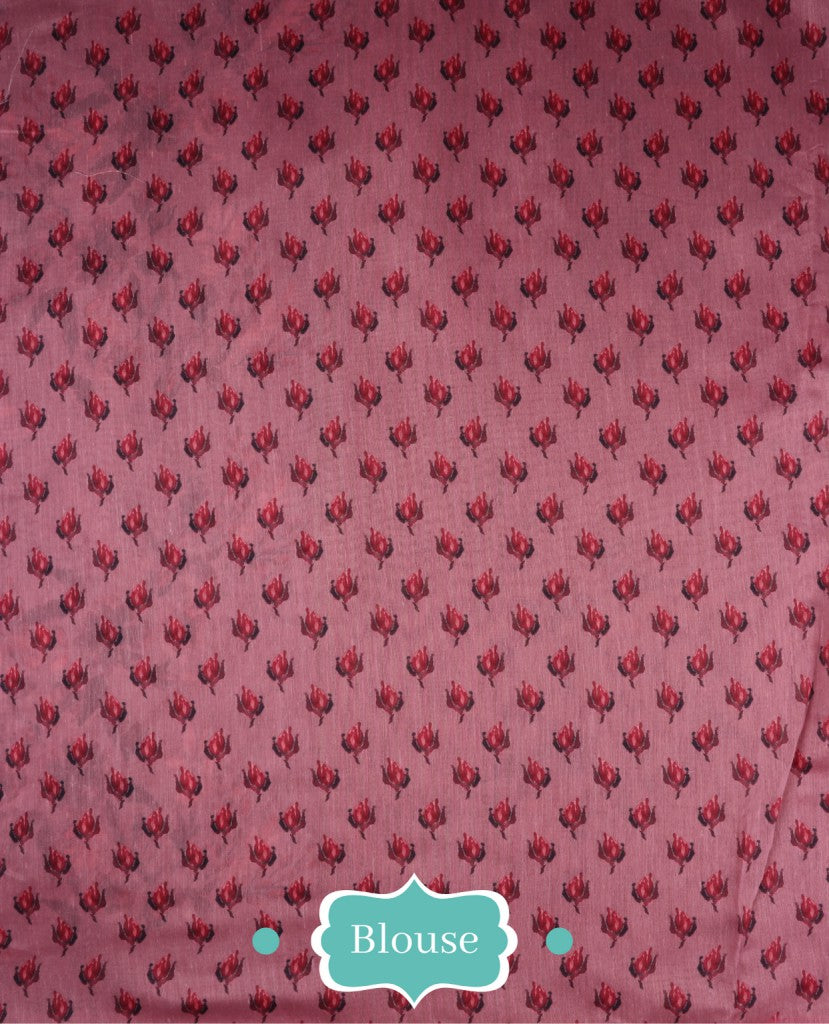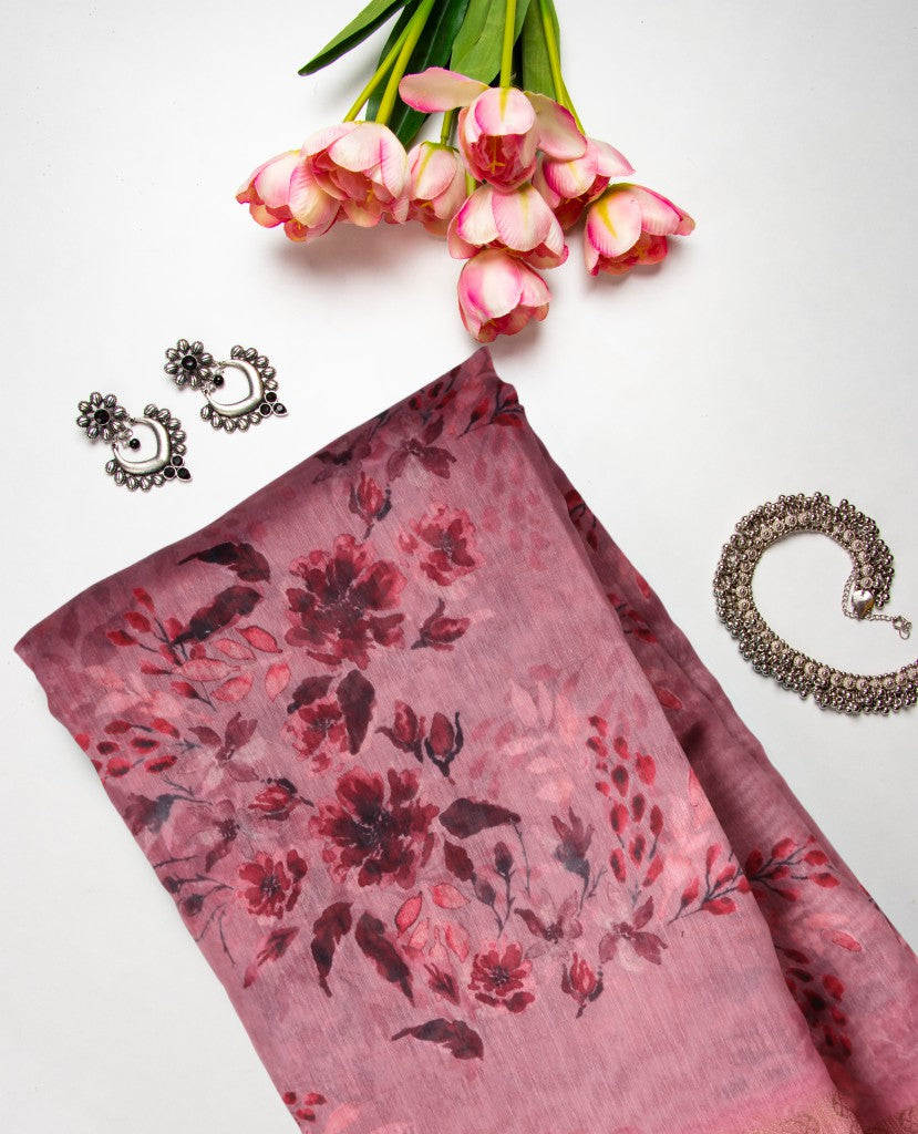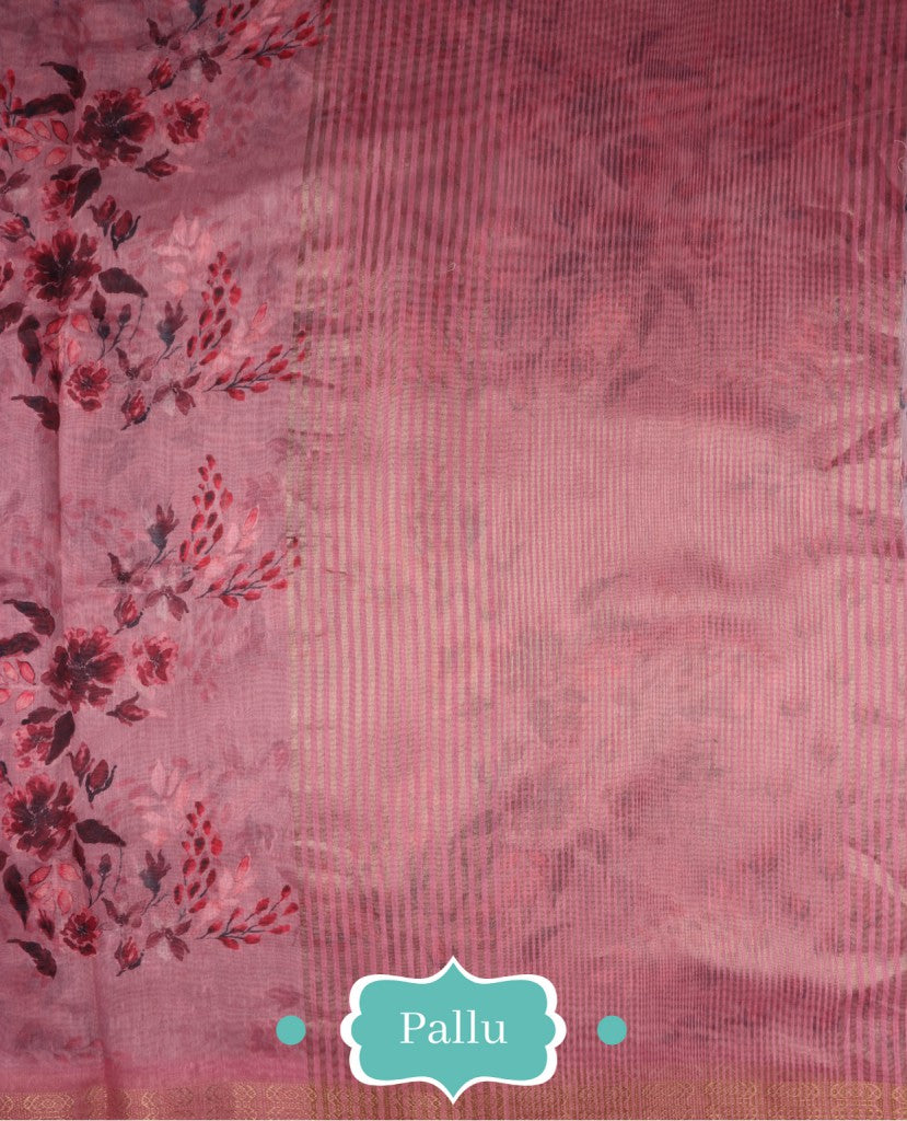 Thullian Pink Floral Pattern Digital Print Chanderi Lurex Saree With Blouse