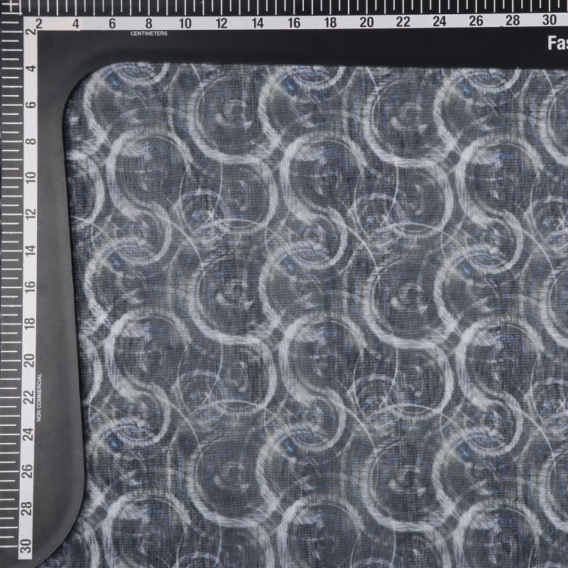 Black And White Abstract Pattern Digital Print Chanderi Fabric