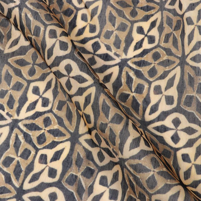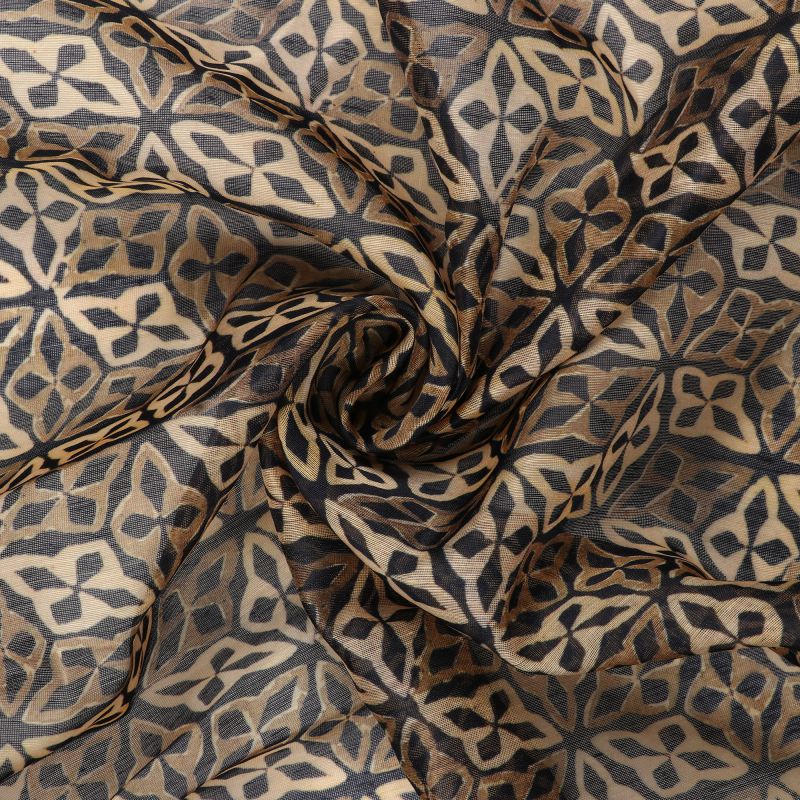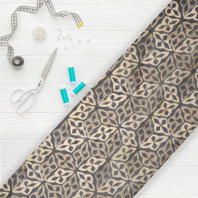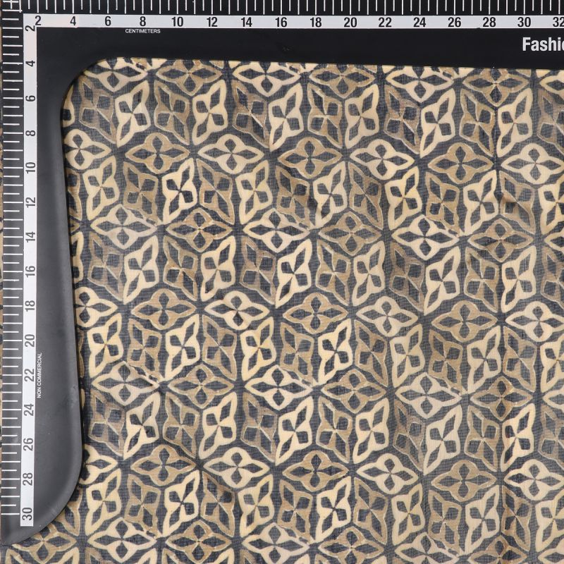 Dark Beige And Dusty Yellow Geometric Pattern Digital Print Chanderi Fabric