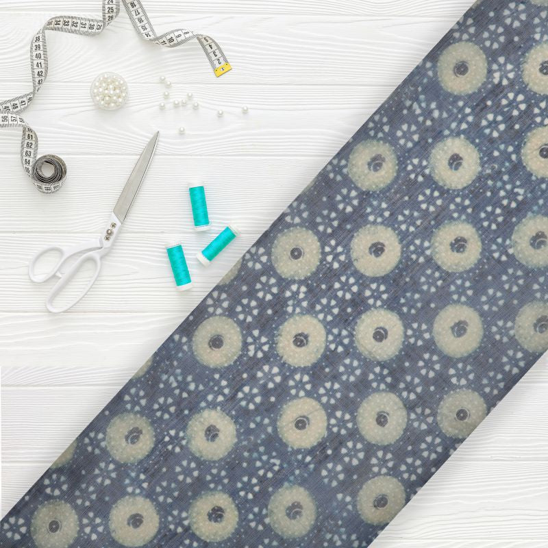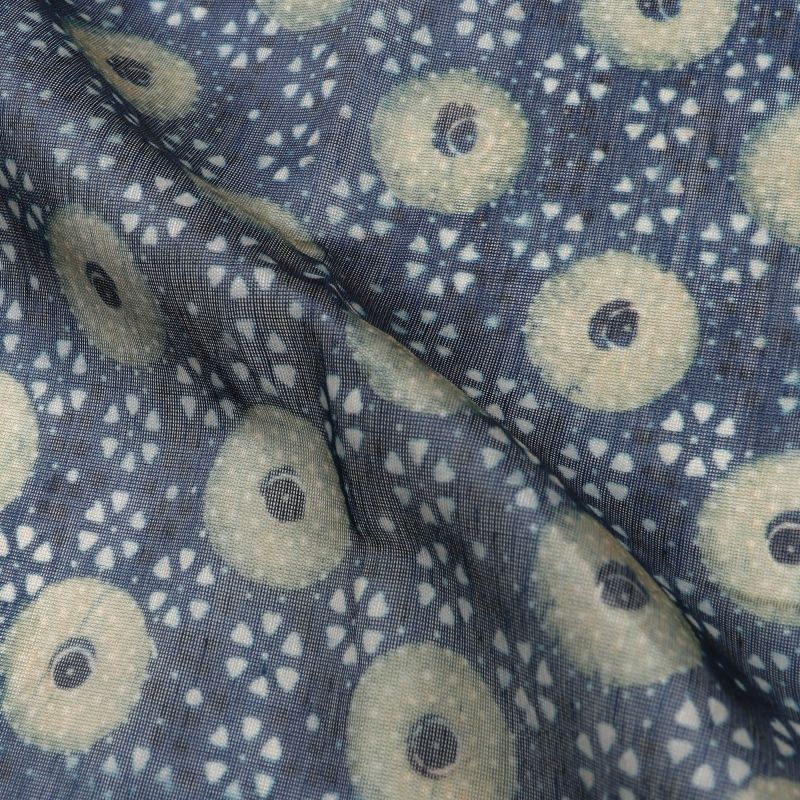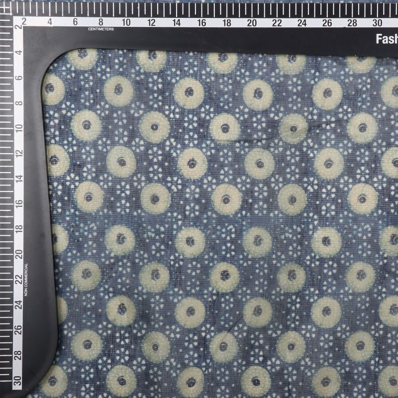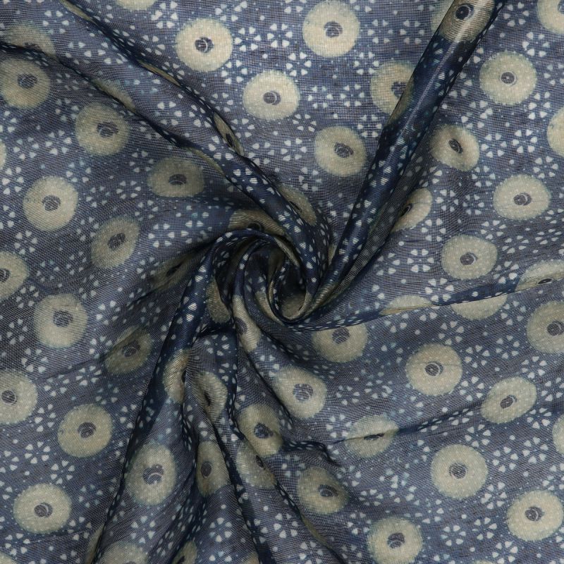 Dark Blue And Dusty Yellow Geometric Pattern Digital Print Chanderi Fabric