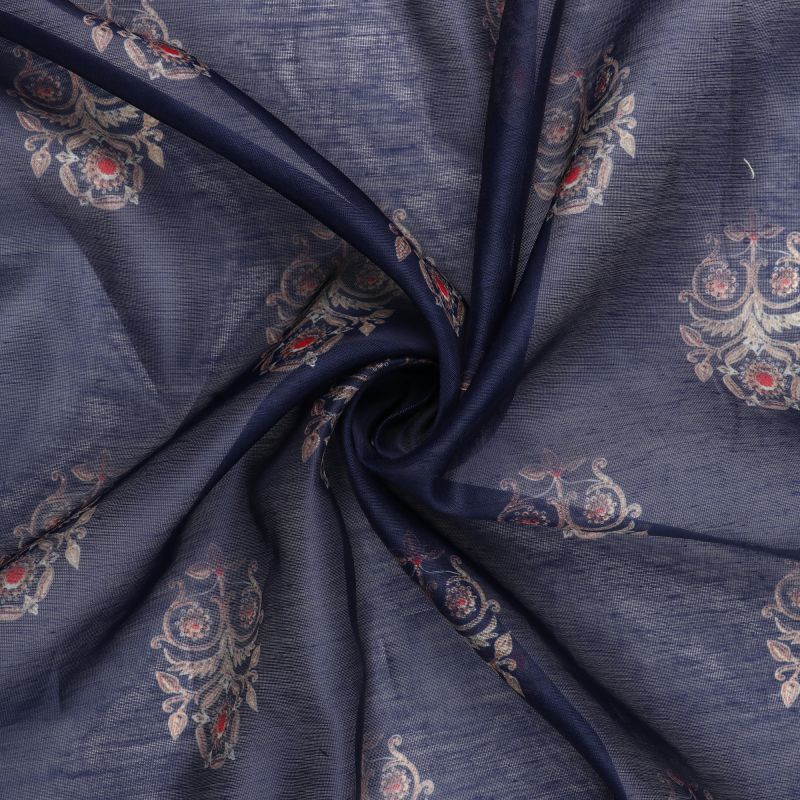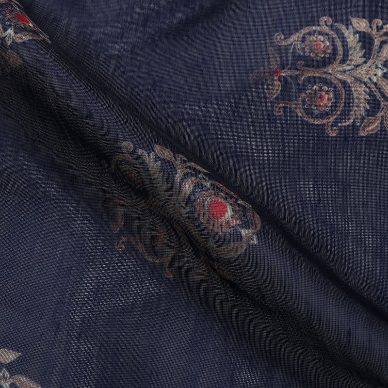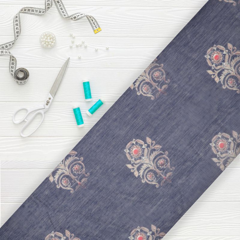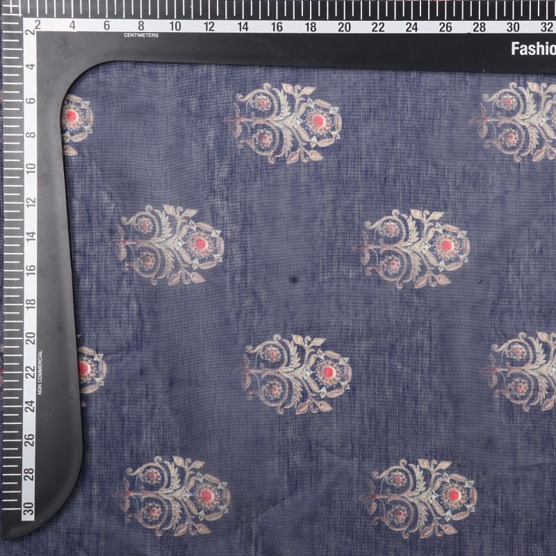 Dusty Blue And Beige Traditional Pattern Digital Print Chanderi Fabric