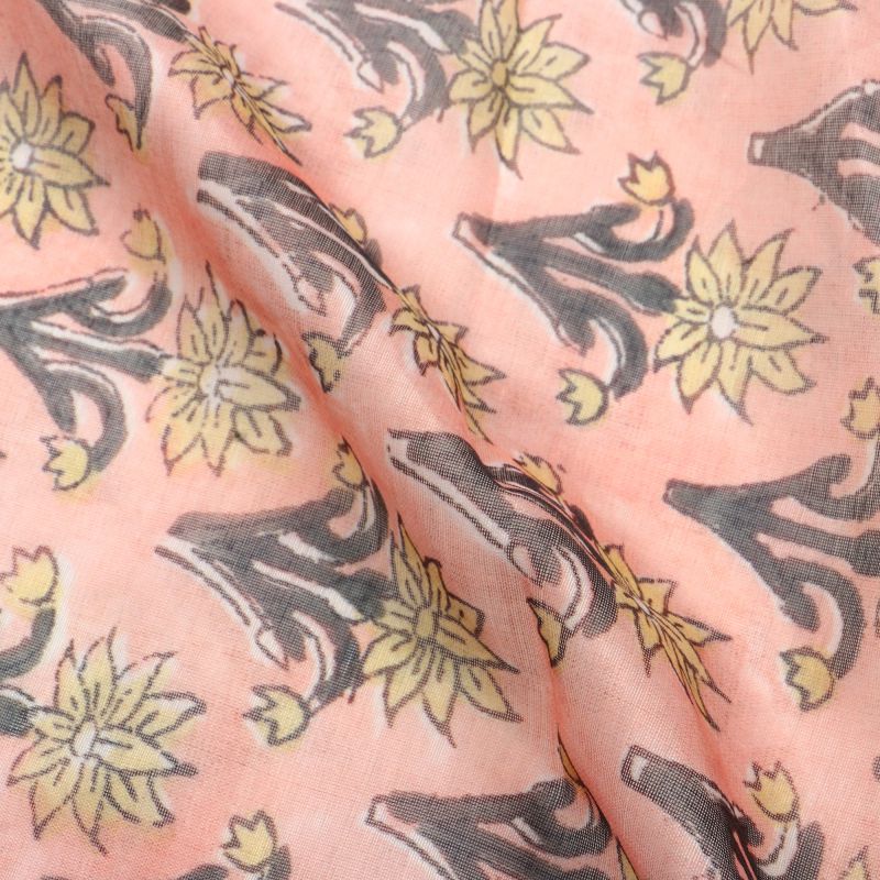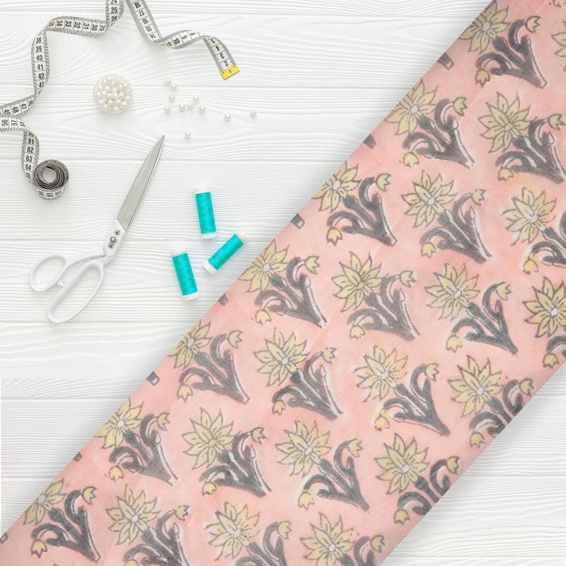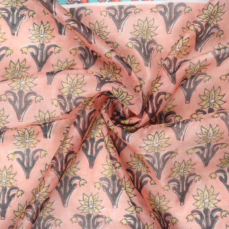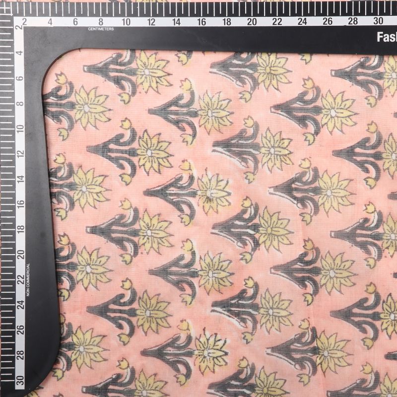 Dusty Peach And Yellow Floral Pattern Digital Print Chanderi Fabric