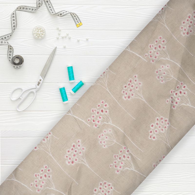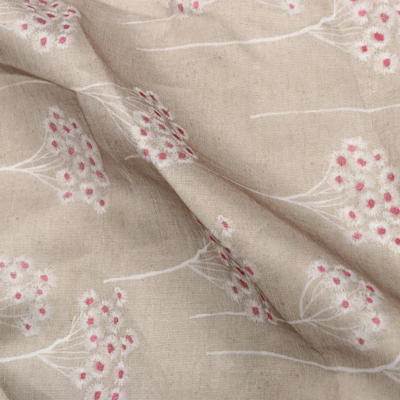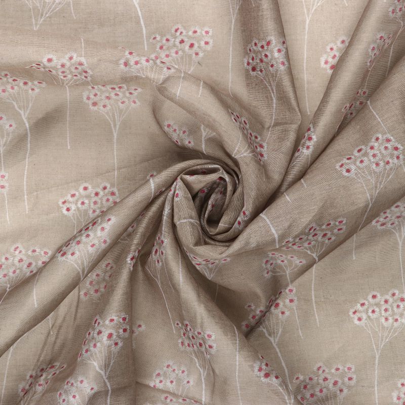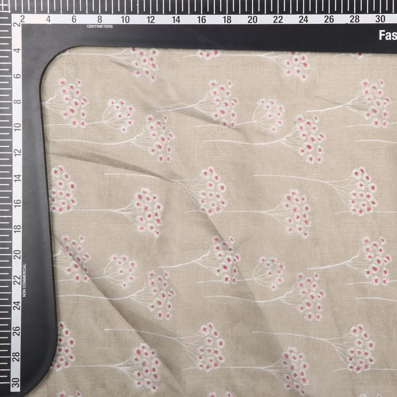 Ecru And Red Floral Pattern Digital Print Chanderi Fabric