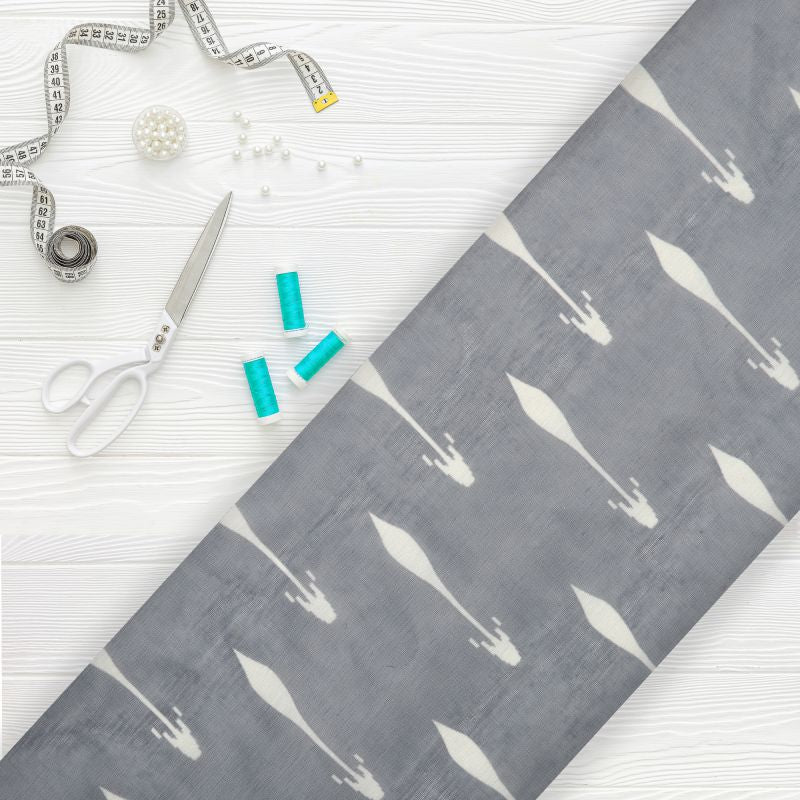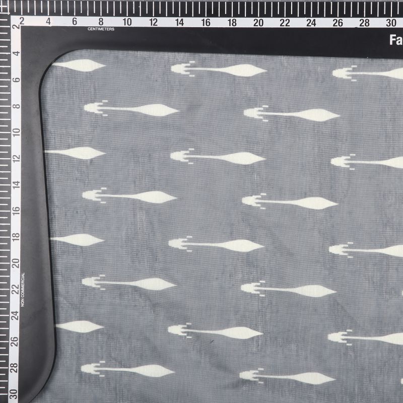 Grey And Ivory Abstract Pattern Digital Print Chanderi Fabric