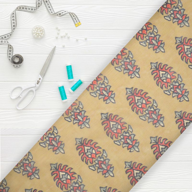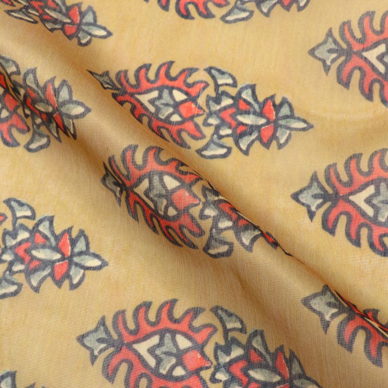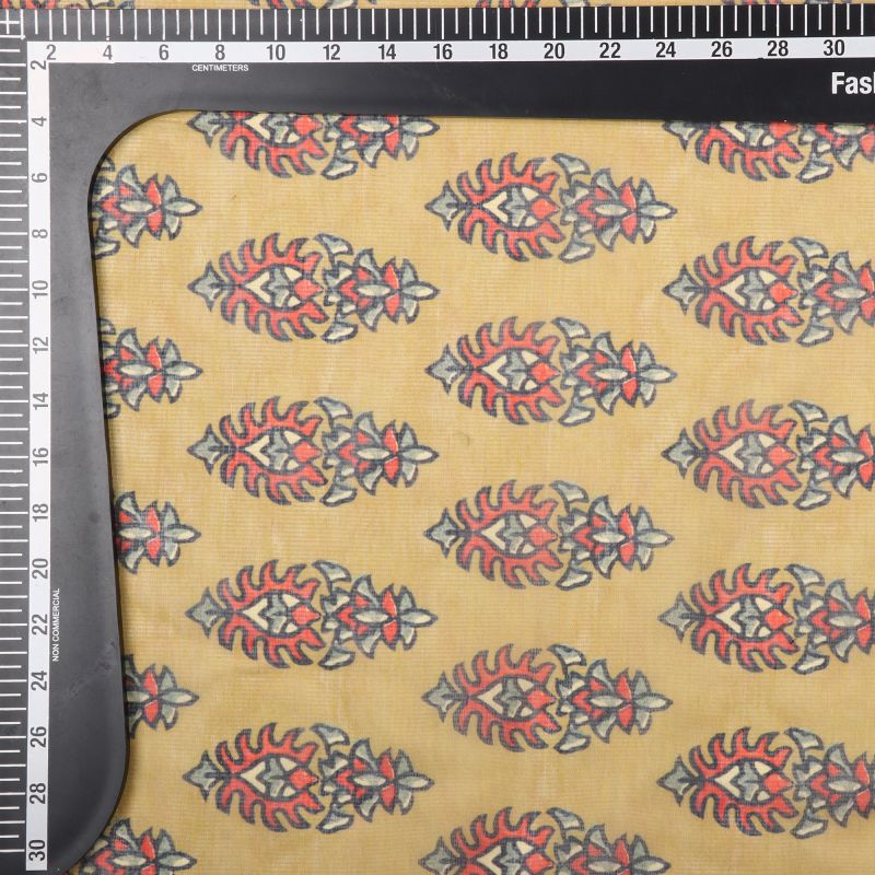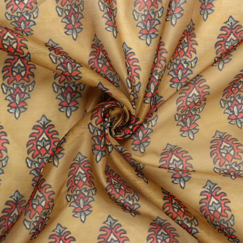 Mustard Yellow And Red Mughal Pattern Digital Print Chanderi Fabric