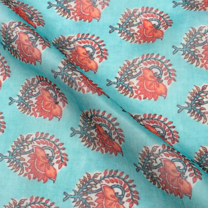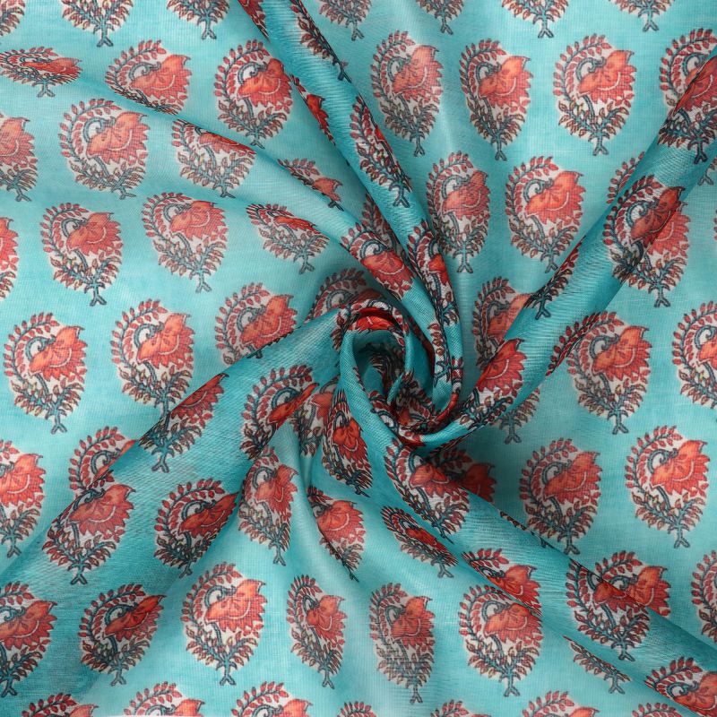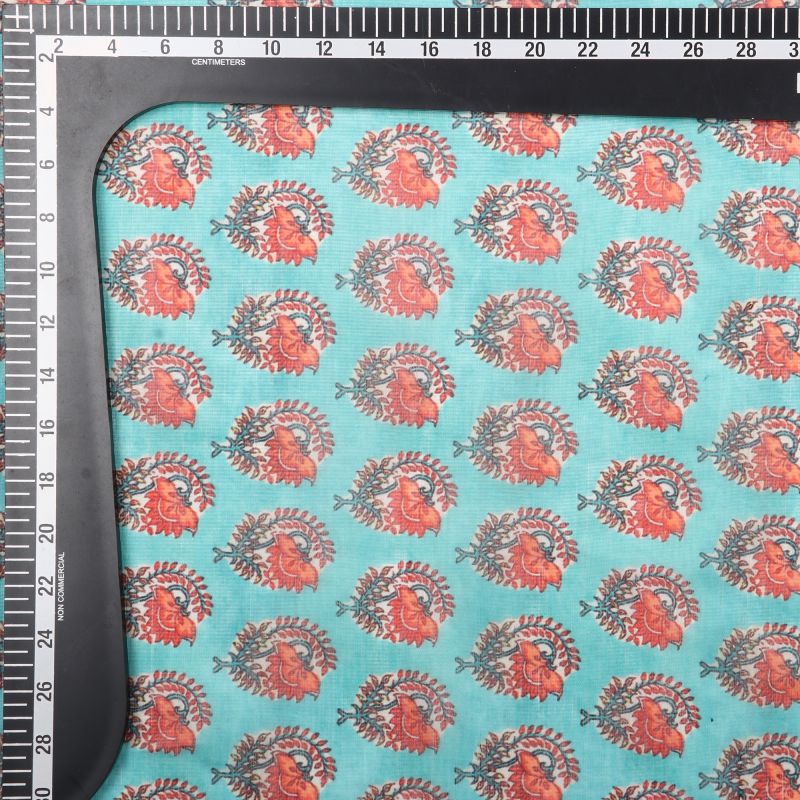 Ocen Green And Orange Booti Pattern Digital Print Chanderi Fabric
