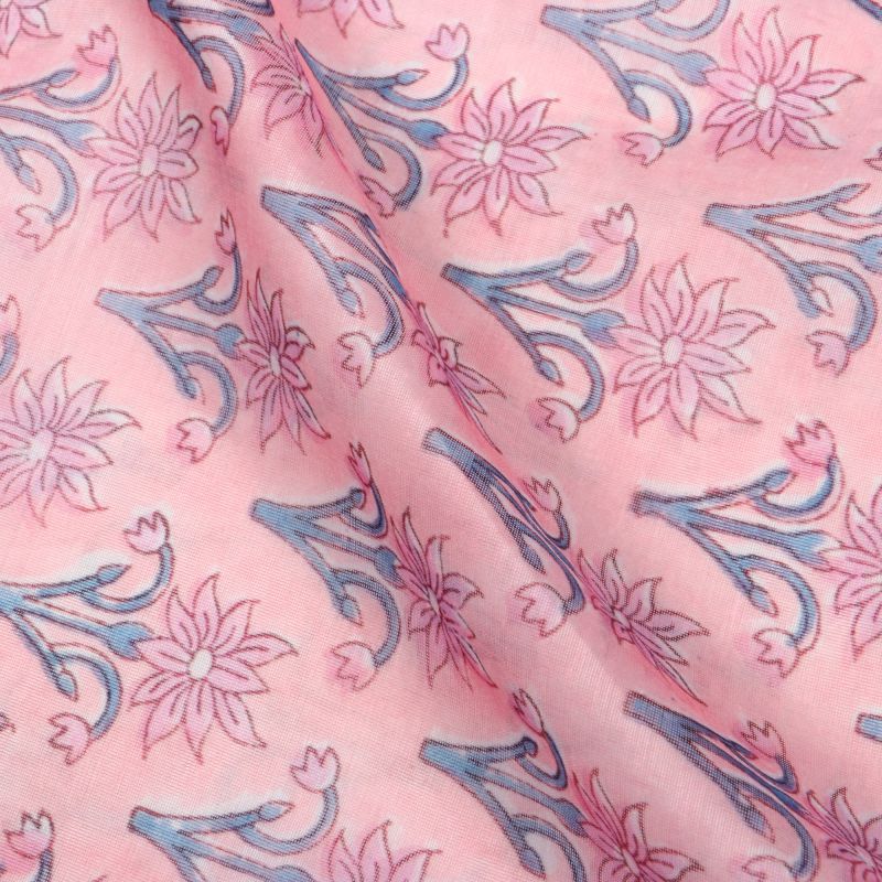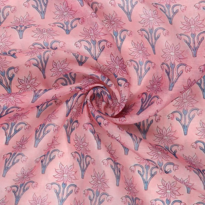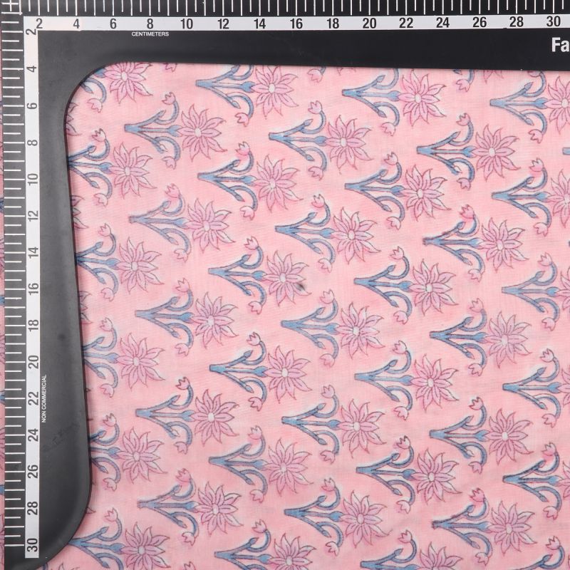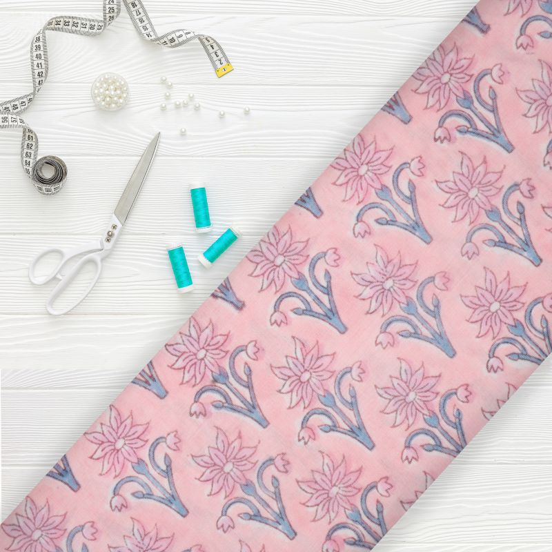 Pink And Blue Floral Pattern Digital Print Chanderi Fabric