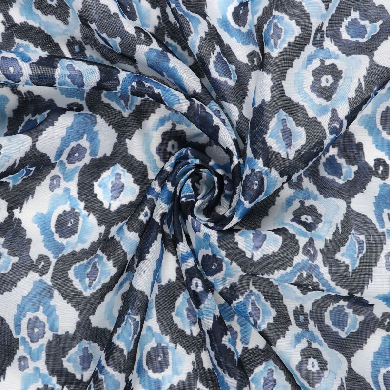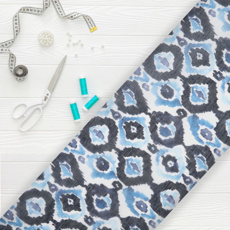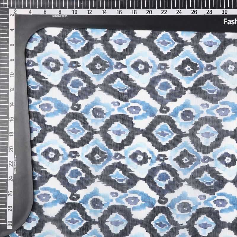Sky Blue And White Geometric Pattern Digital Print Chanderi Fabric