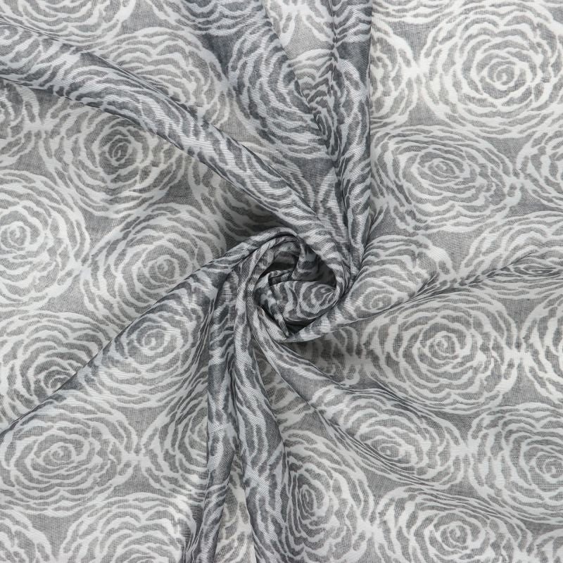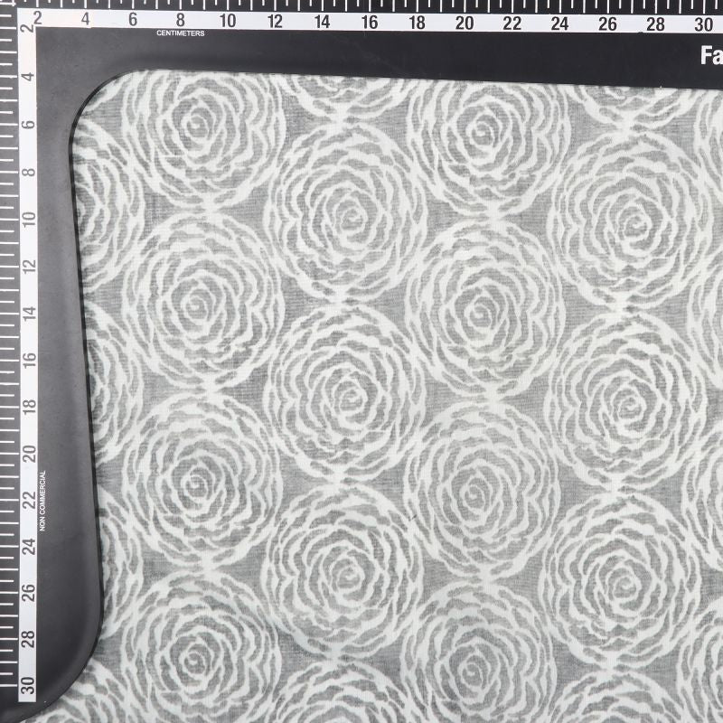 White And Beige Floral Pattern Digital Print Chanderi Fabric