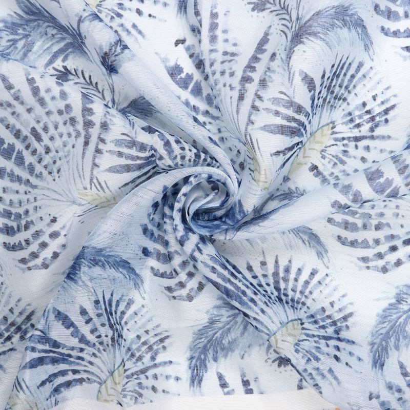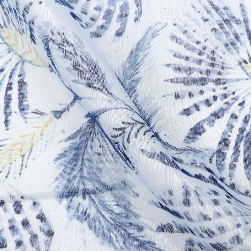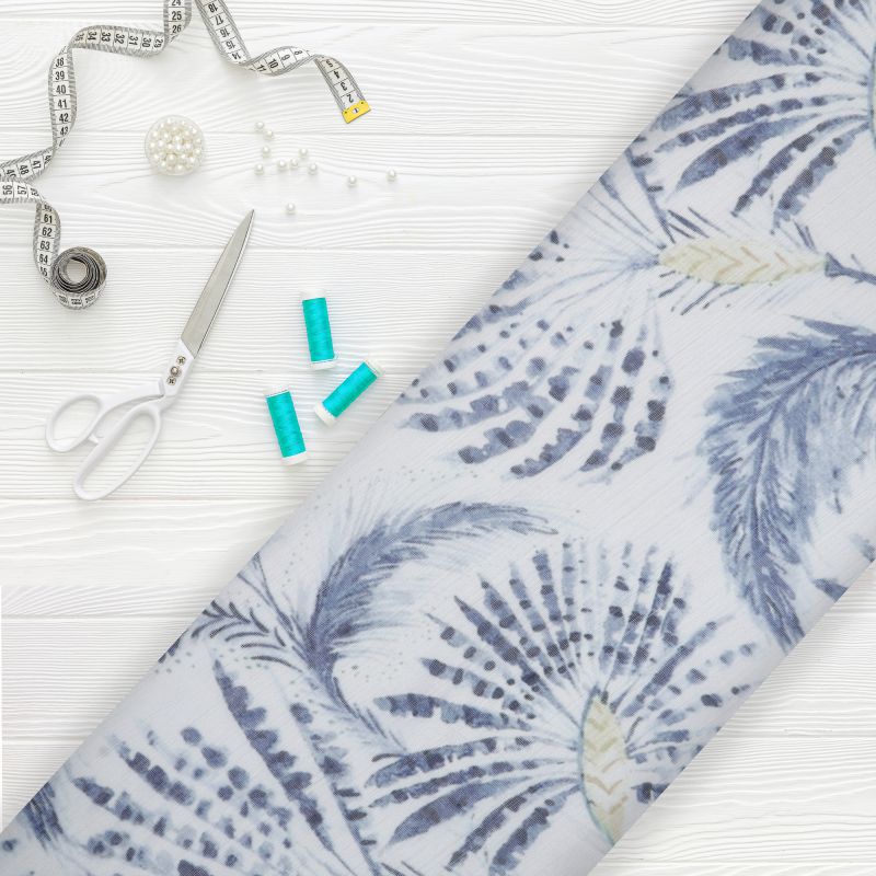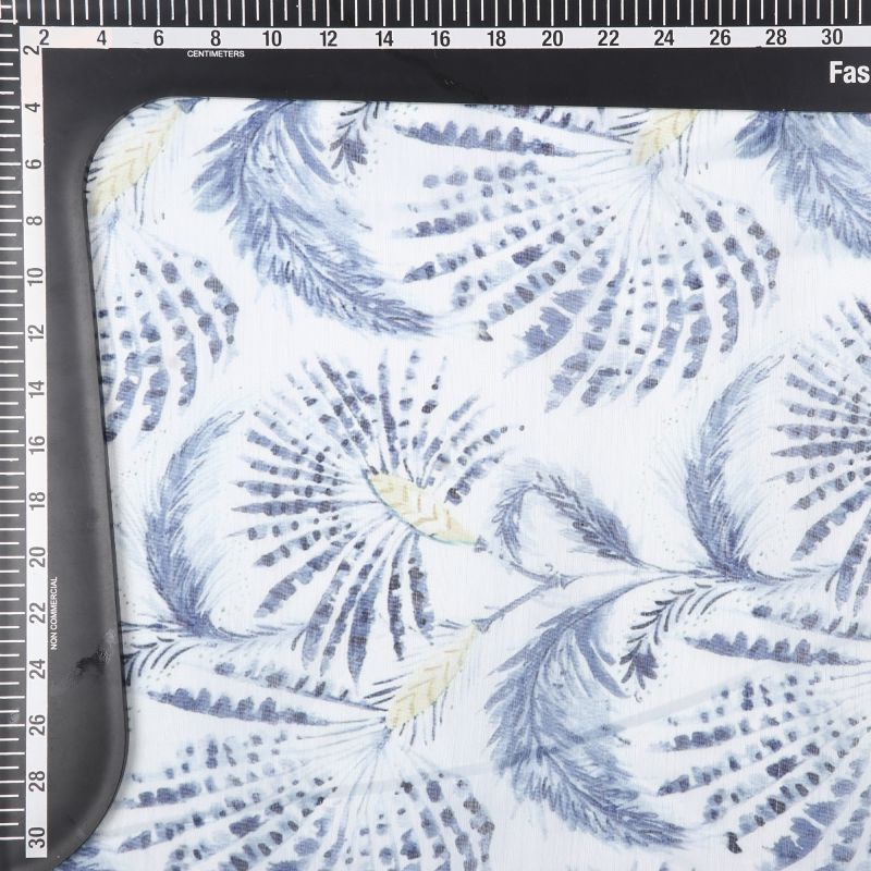 White And Blue Tropical Pattern Digital Print Chanderi Fabric
