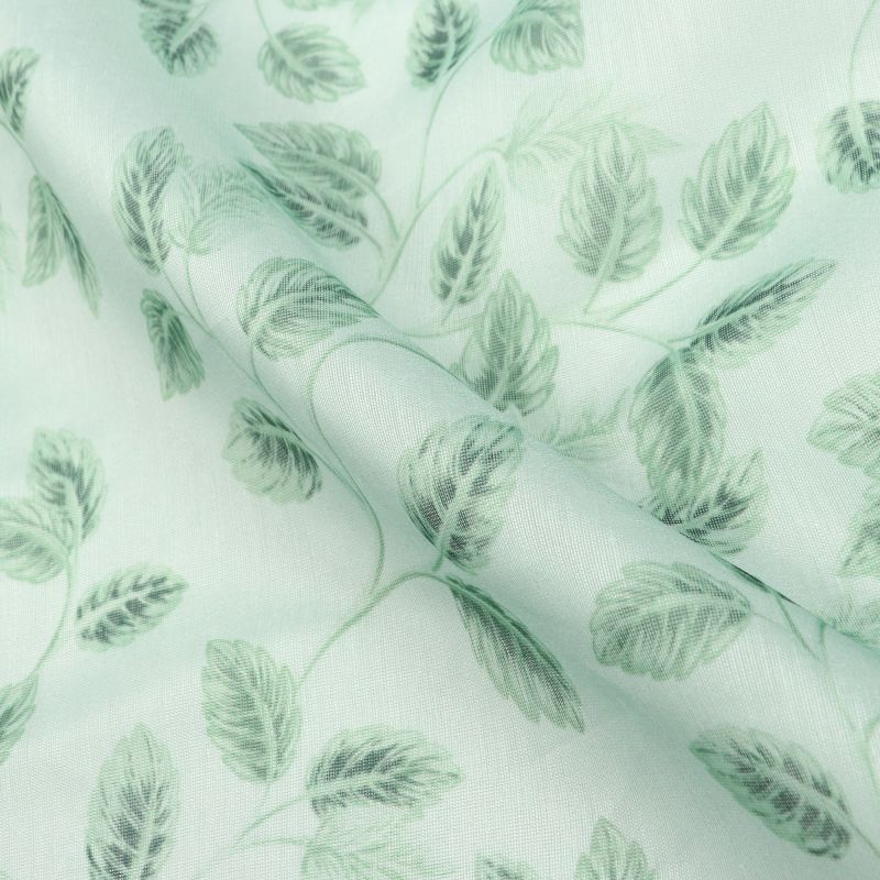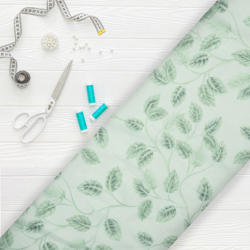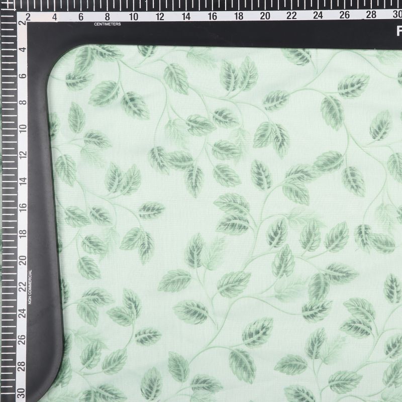 White And Mint Green Leaf Pattern Digital Print Chanderi Fabric