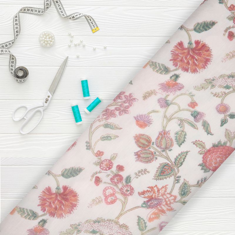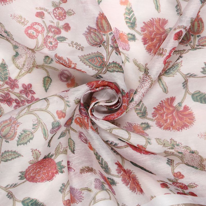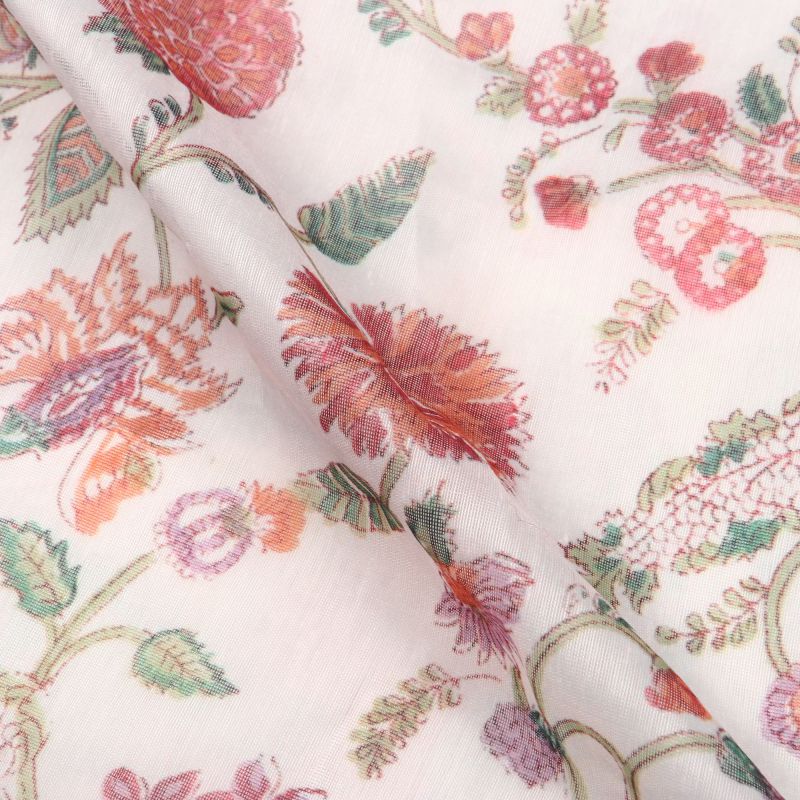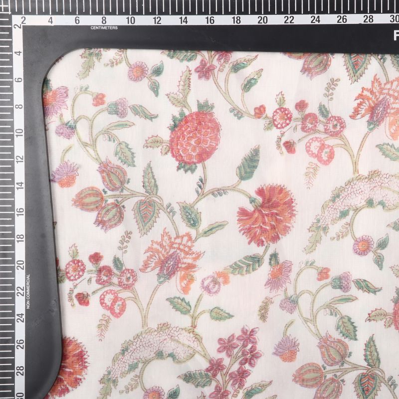 White And Red Floral Pattern Digital Print Chanderi Fabric