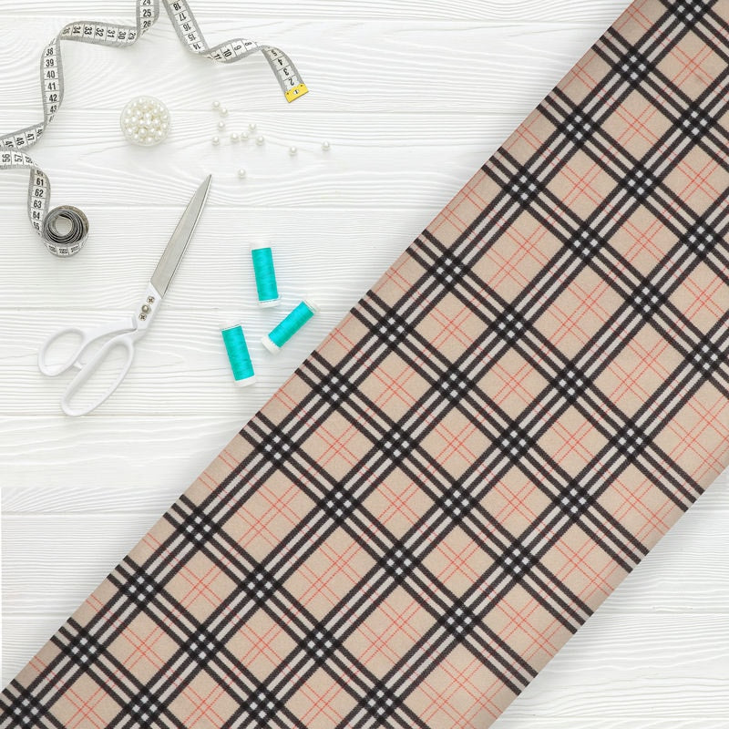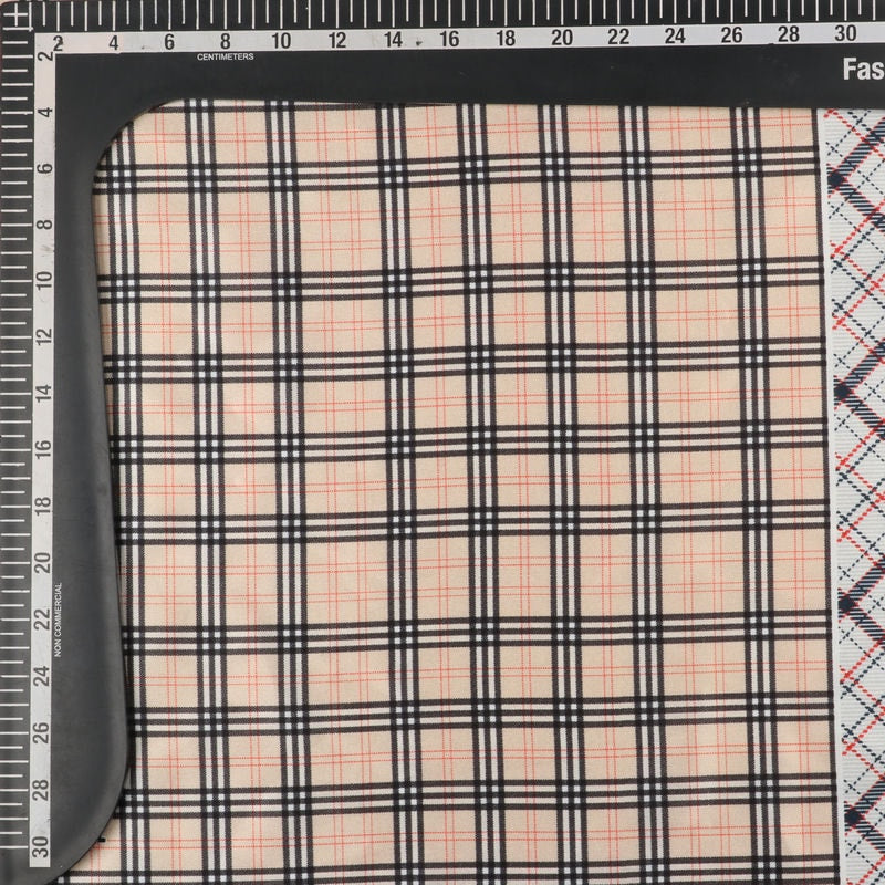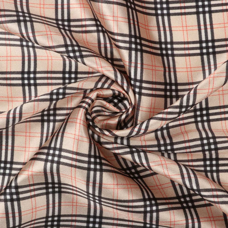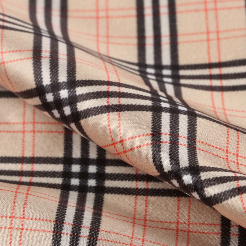 Black And Light Beige Checks Pattern Digital Print Japan Satin Fabric