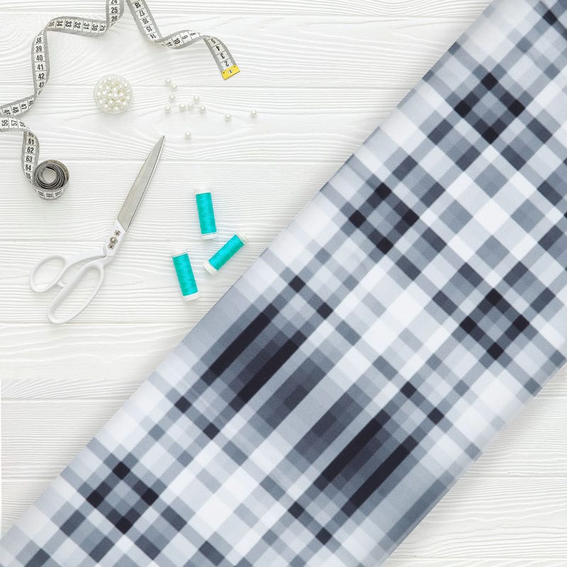 Black And White Checks Pattern Digital Print Crepe Fabric