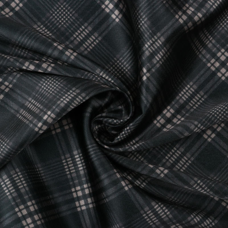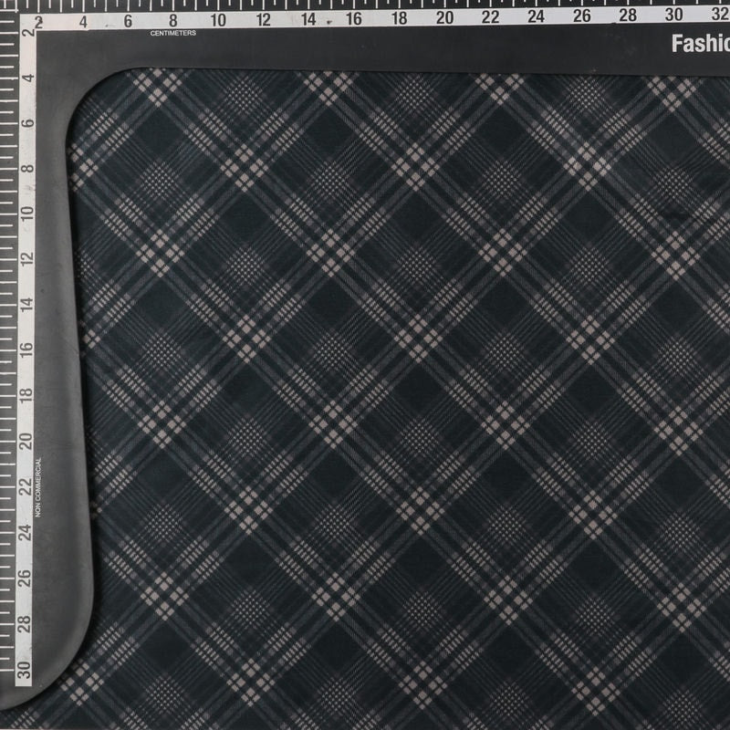 Dark Green And Black Checks Pattern Digital Print Japan Satin Fabric