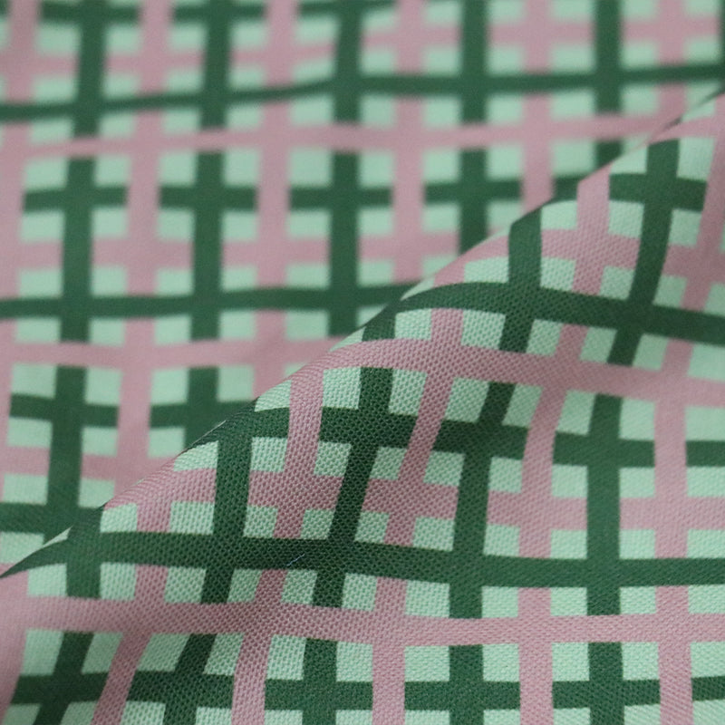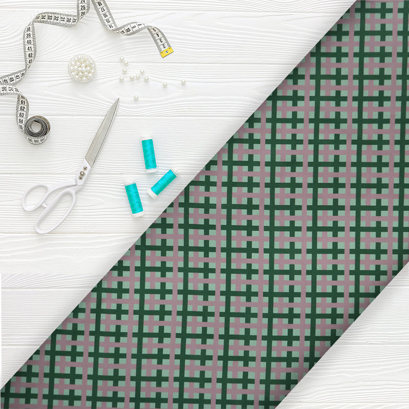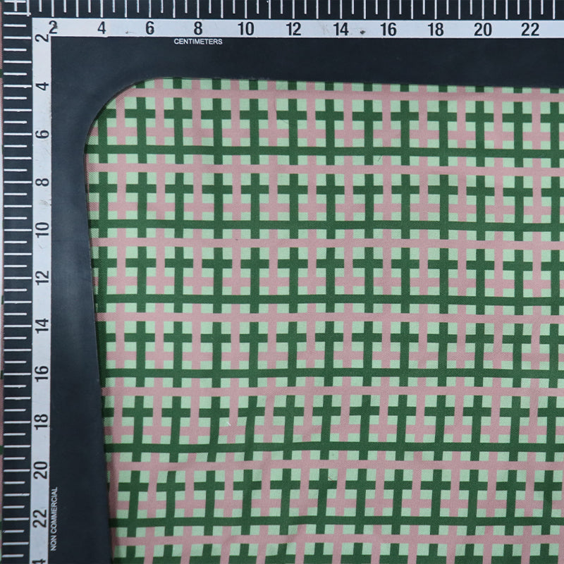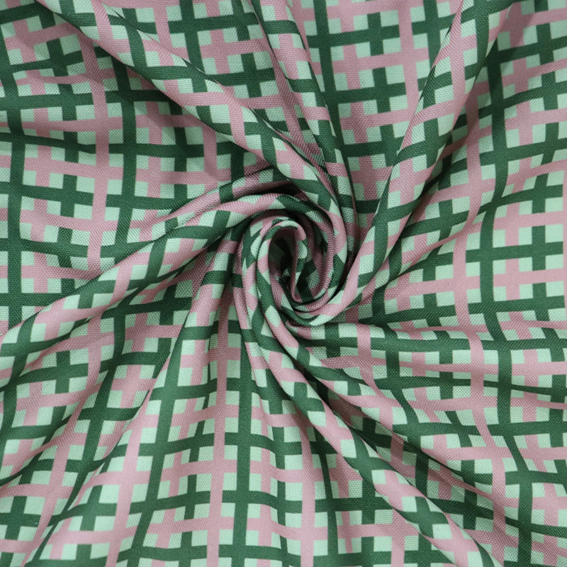Dark Green And Pink Checks Pattern Digital Print Rayon Fabric.