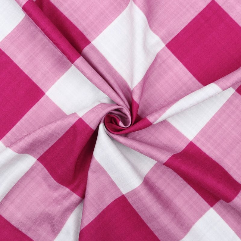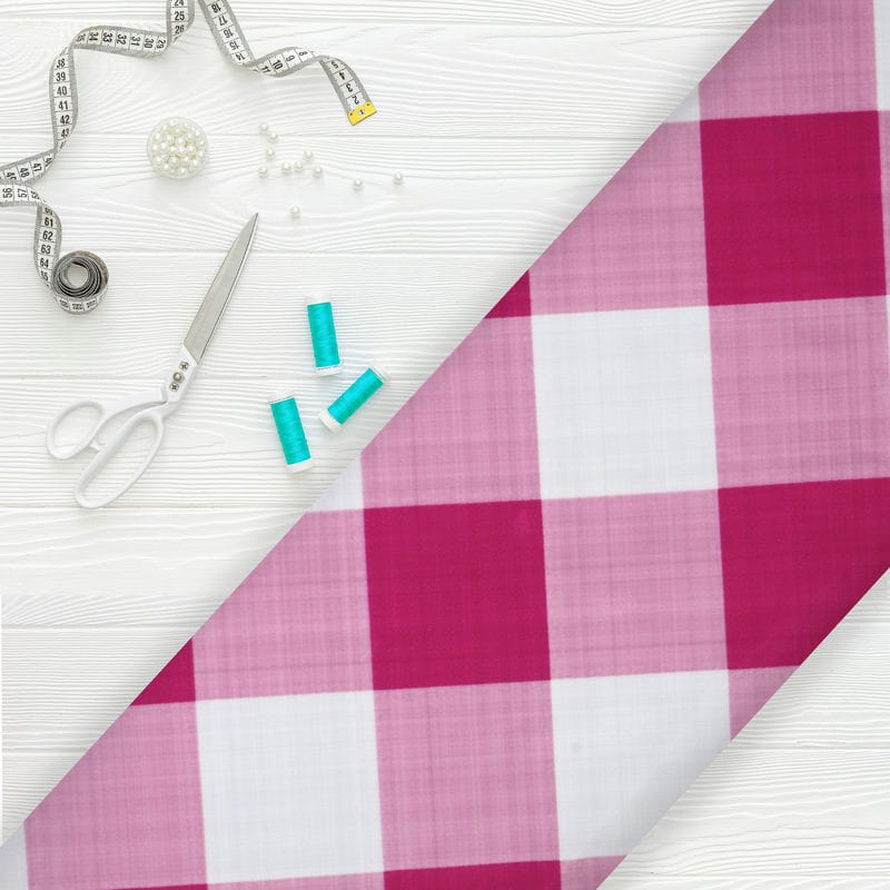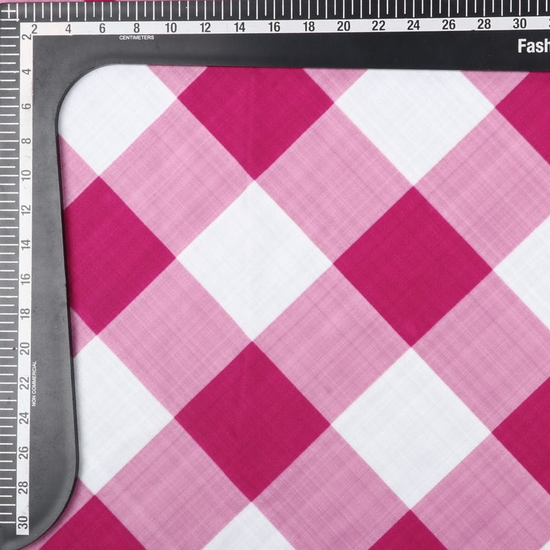 Dark Pink And White Checks Pattern Digital Print Rayon Fabric