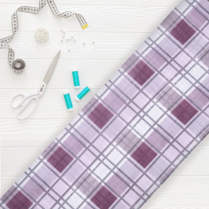 Dusty Pink And Black Checks Pattern Digital Print Georgette Fabric
