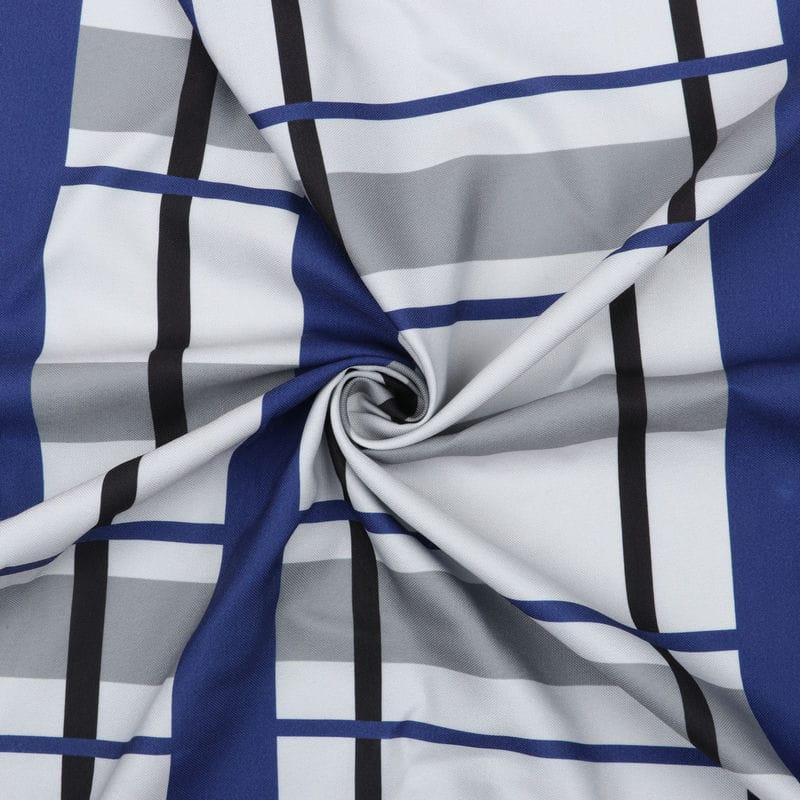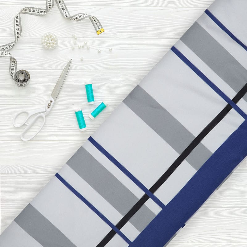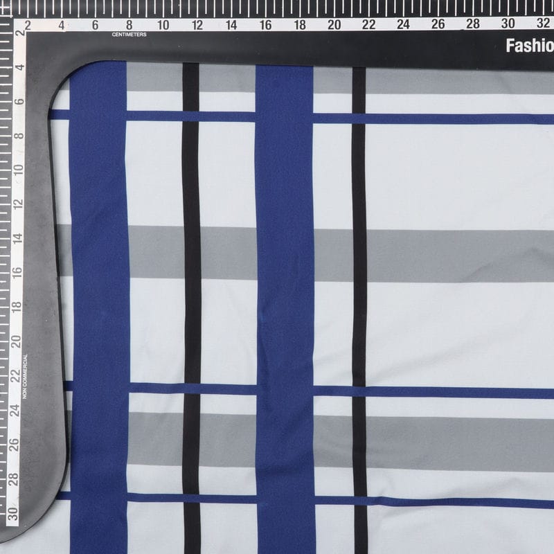 Grey And Navy Blue Checks Pattern Digital Print Rayon Fabric