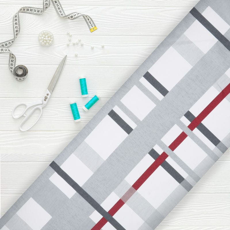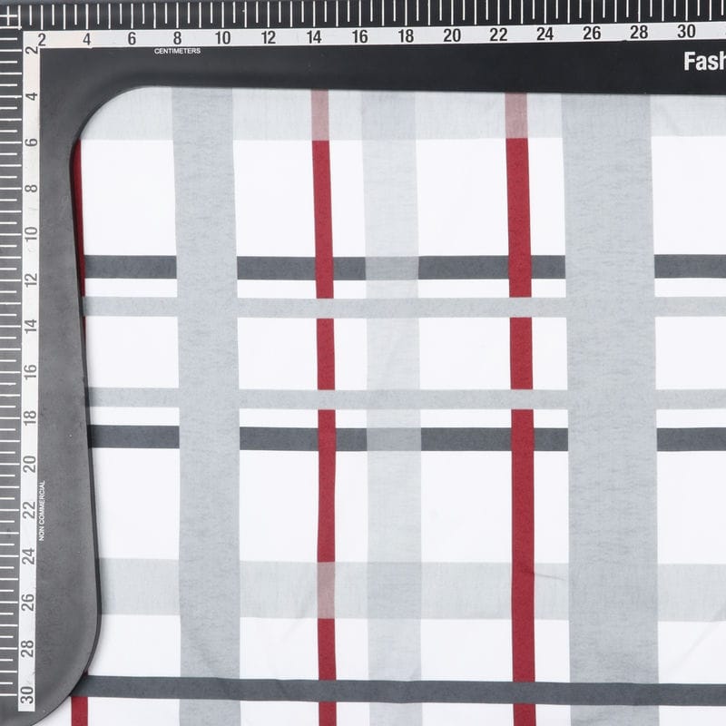 Light Grey And White Checks Pattern Digital Print Rayon Fabric