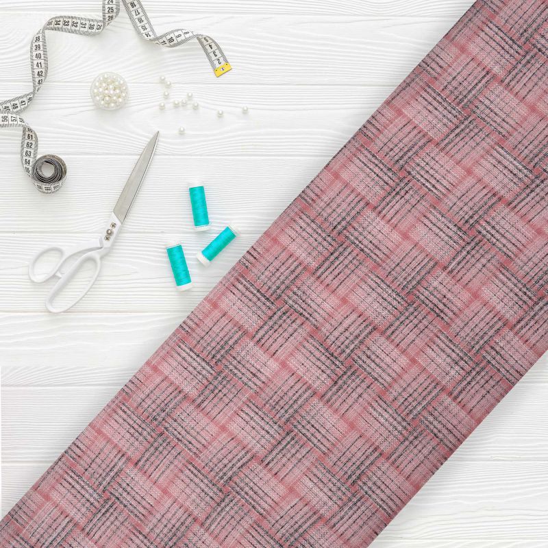 Light Pink And Black Checks Pattern Dyed Pink City Cotton Fabric