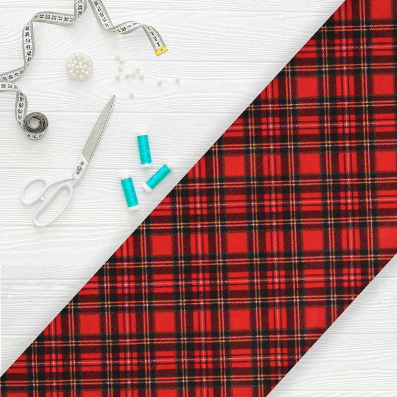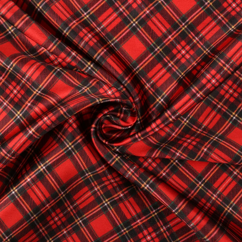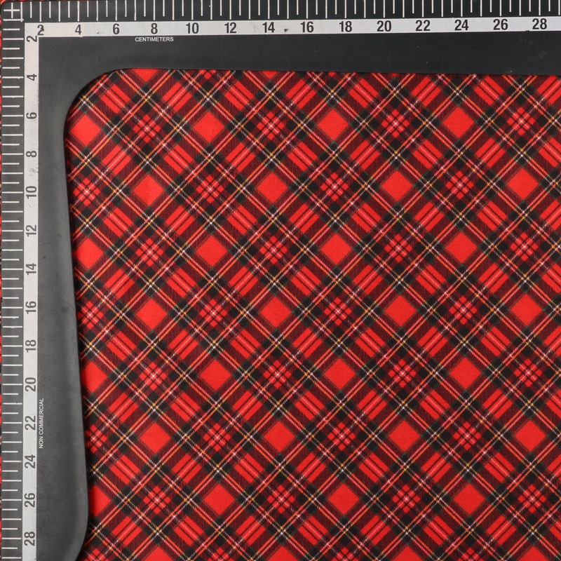 Red And Black Checks Pattern Digital Print Japan Satin Fabric