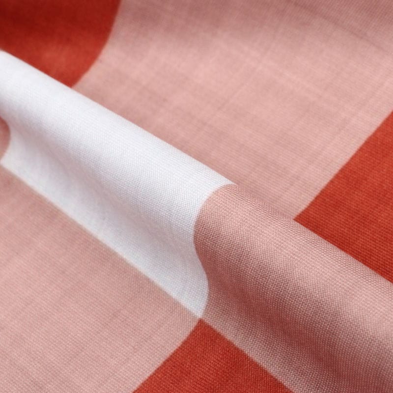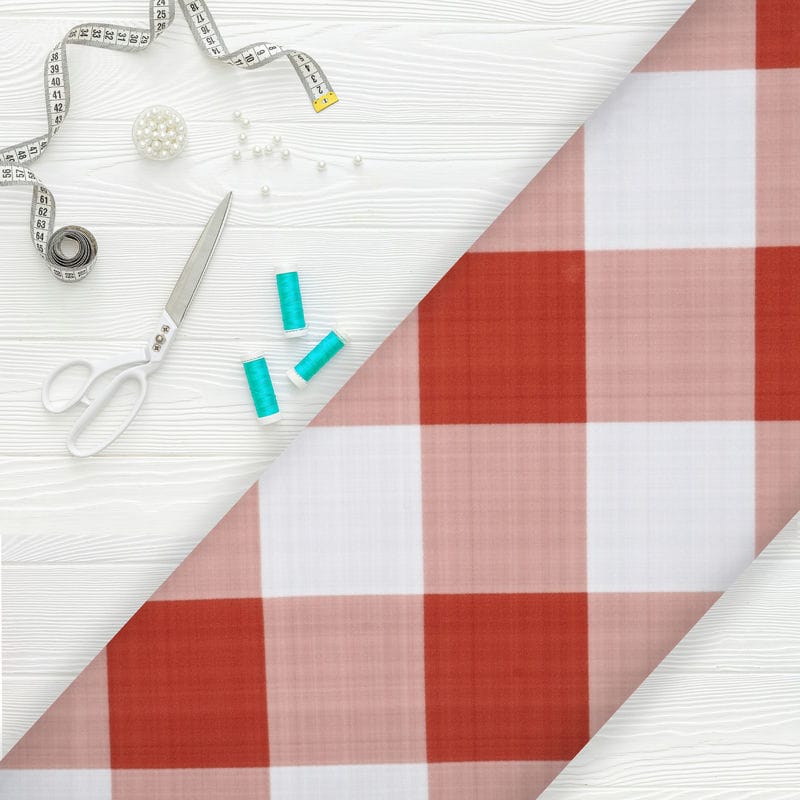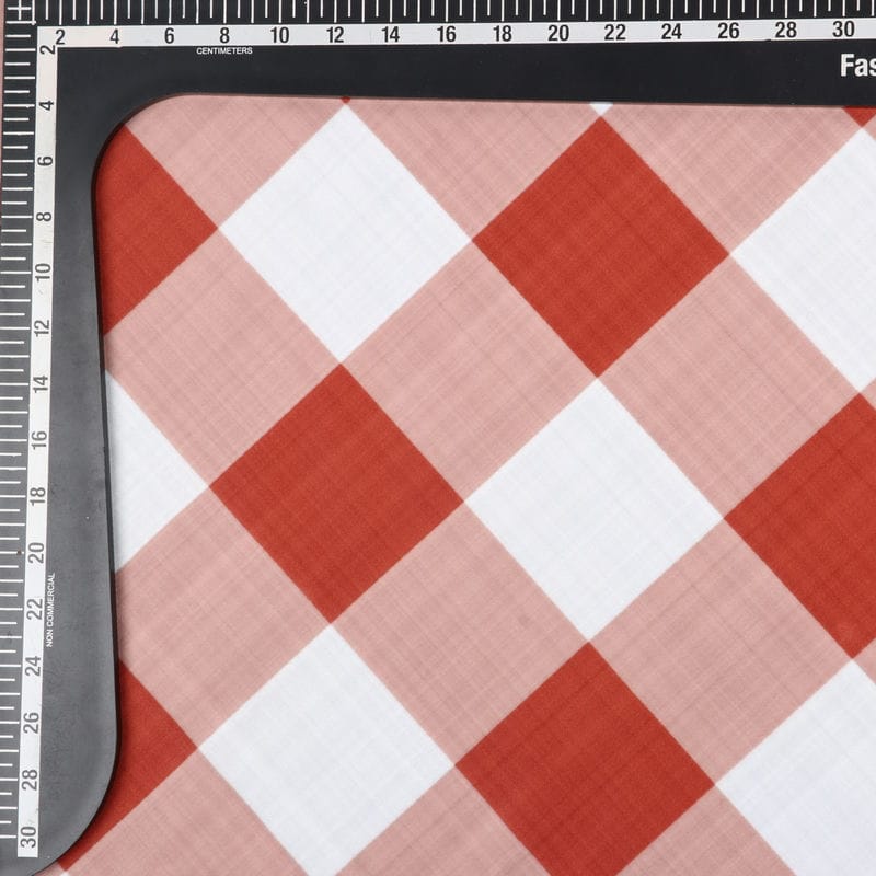 Rust And White Checks Pattern Digital Print Rayon Fabric