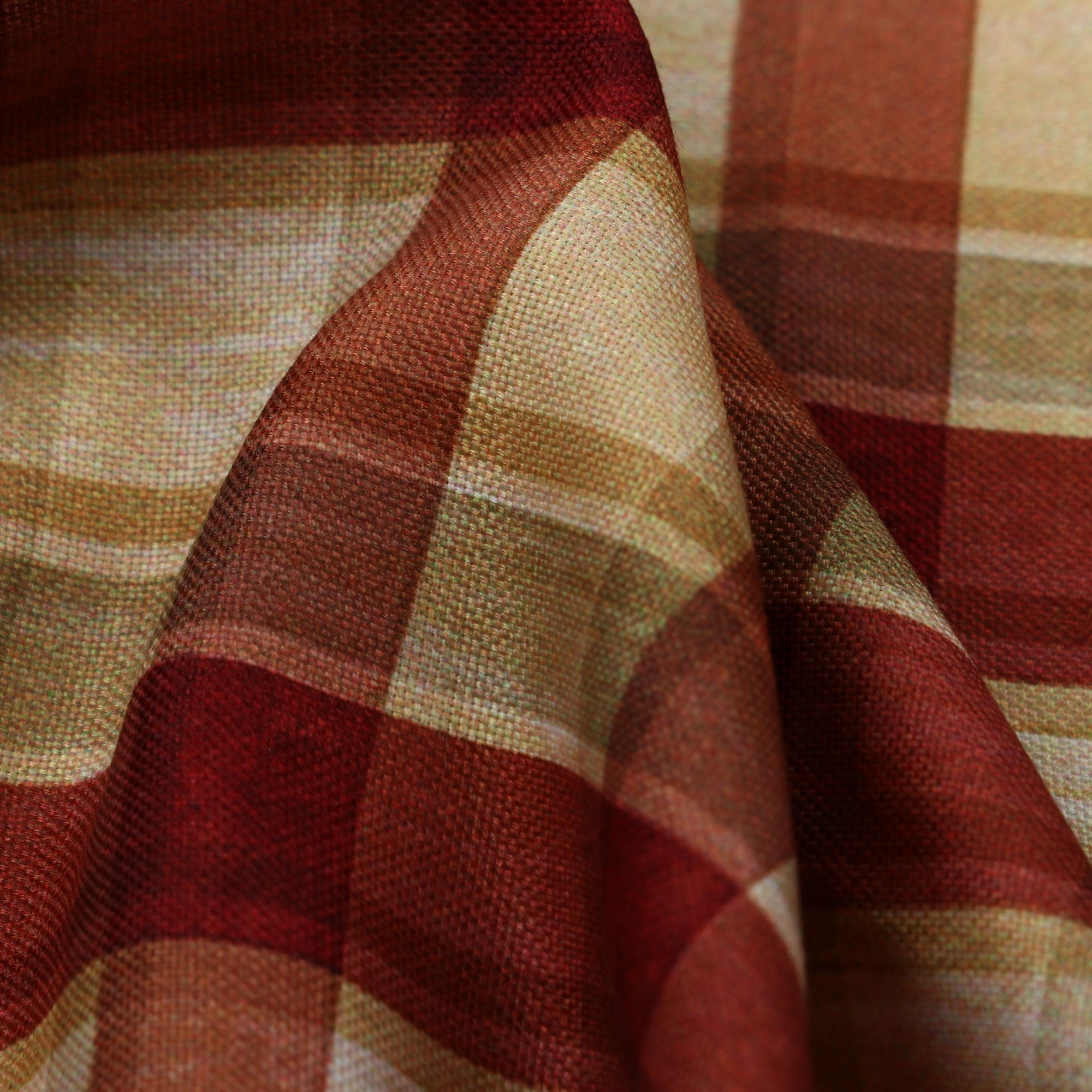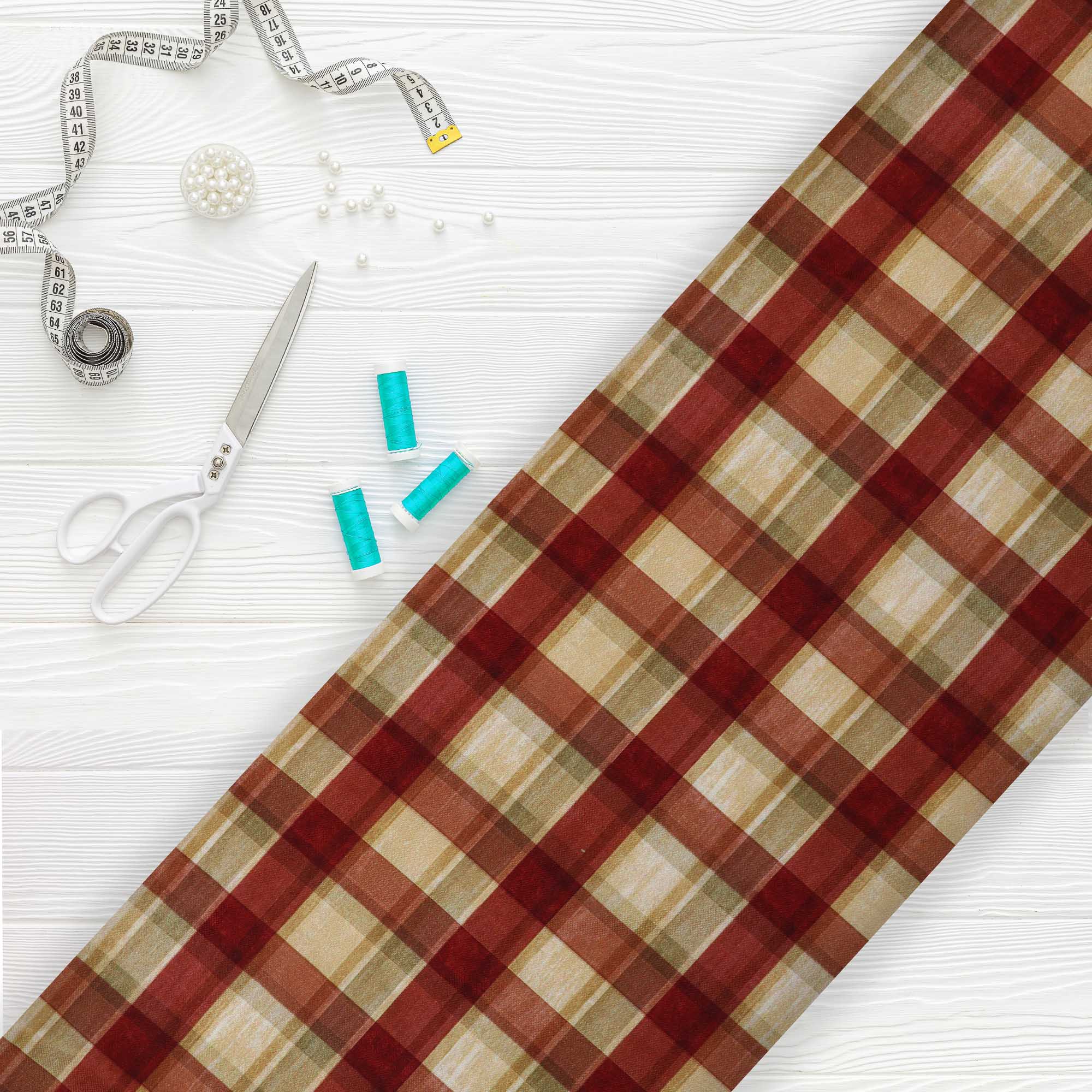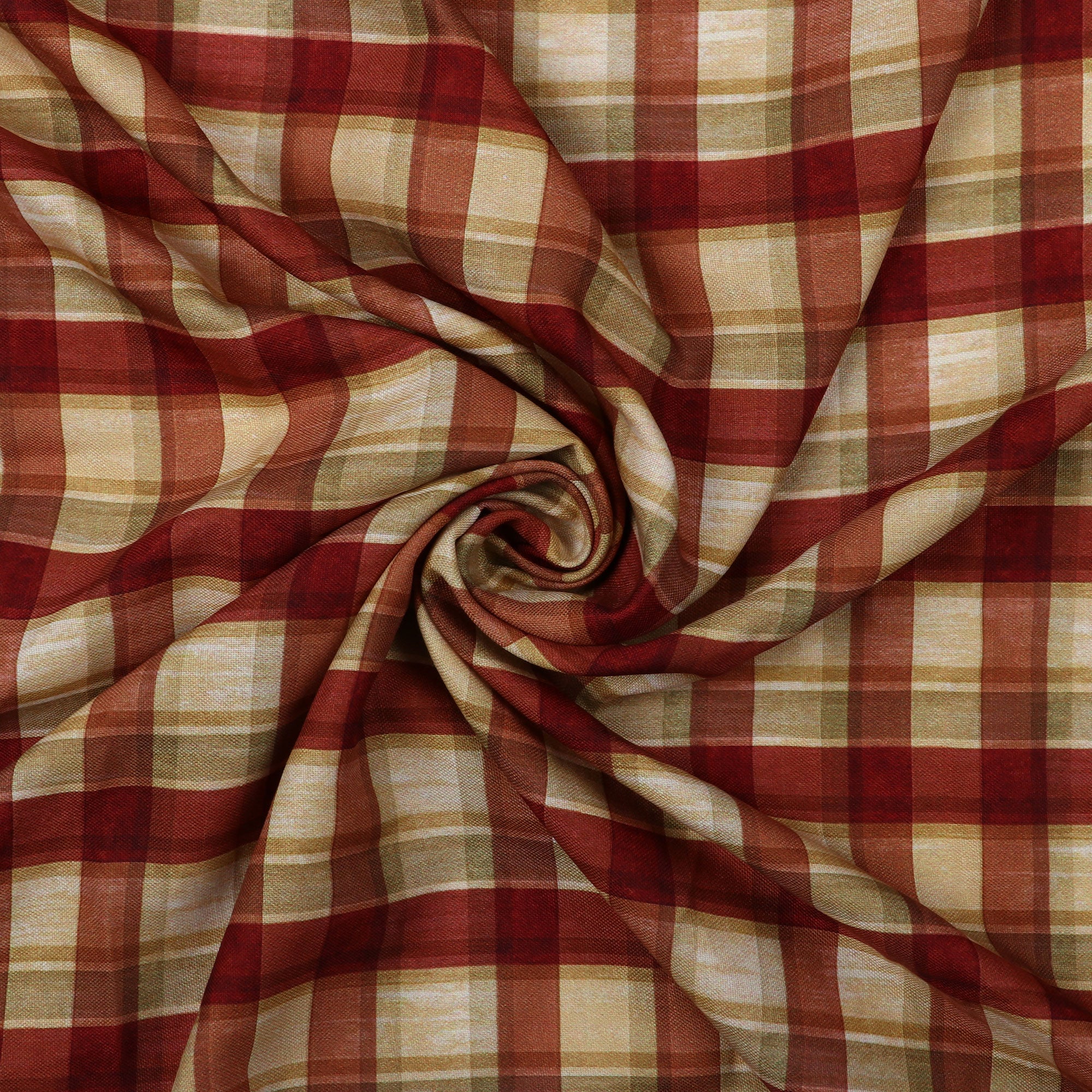 Yellow And Maroon Checks Pattern Digital Print Rayon Fabric