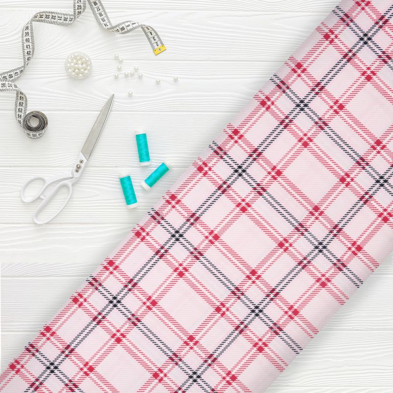 Baby Pink And Red Checks Pattern Digital Print Crepe Fabric